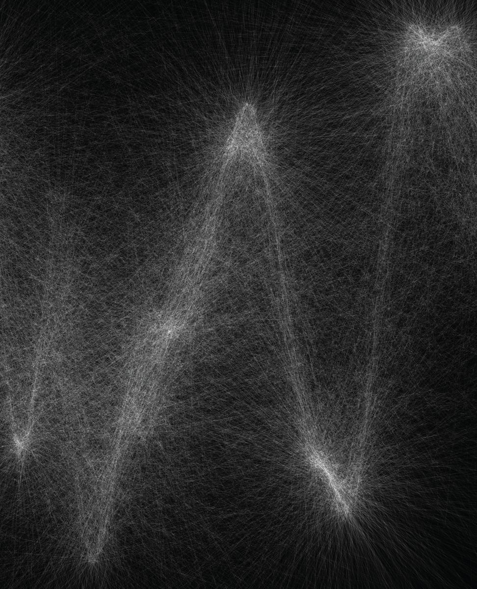 between the artist and the machine. The following are pieces of a larger exhibition consisting of 25 images arranged in a grid. Inspired by the Arctic Monkeys album “AM”, the pieces are coded using Java script and have randomness functions embedded to produce varying results. Elements such as noise, amplitude and line weight were manually manipulated to achieve desired results.