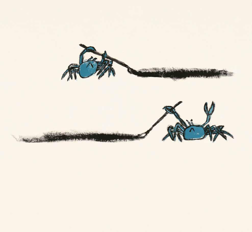 Il granchietto pizzica la matita tra le chele e, seguendo la direzione del suo movimento orizzontale, scrive un 1 sdraiato.
