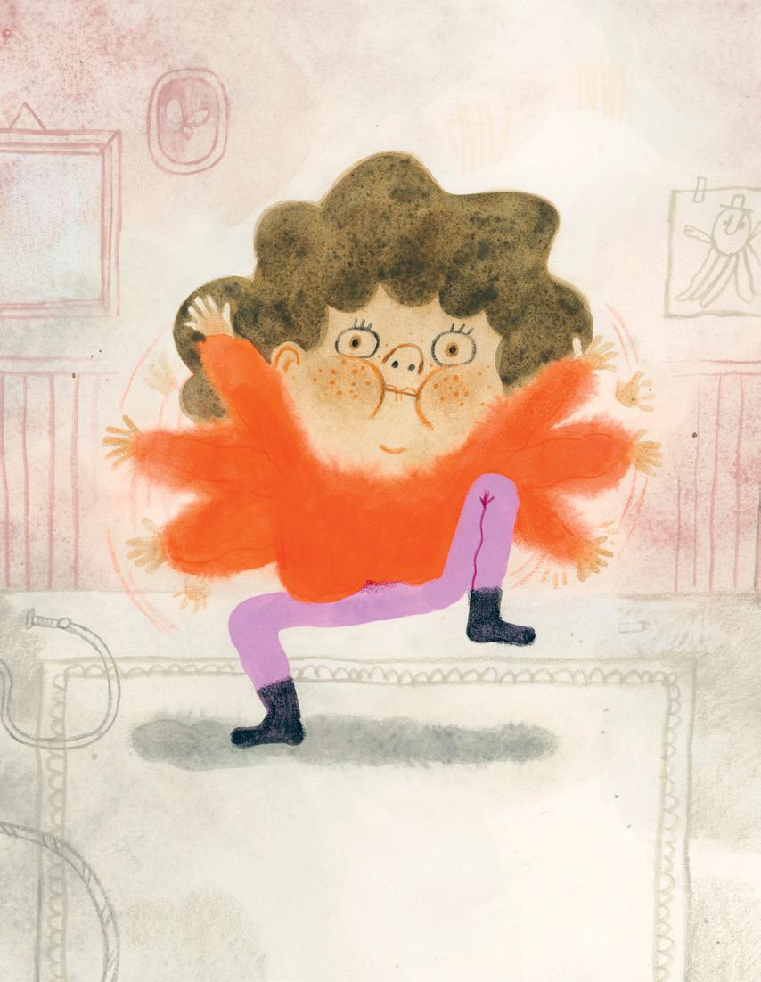 Era così annoiata che cominciò a roteare le braccia come fossero ventilatori. Poi cominciò anche a sbattere i piedi, e infine aggiunse dei suoni scoppiettanti con la bocca.
