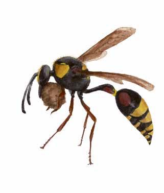 Poi caccia ragni vivi o bruchi, che lascia paralizzati nel nido, così che la larva, appena nata, possa mangiarli freschi. Che fortuna non essere un ragno! Osserva il punto vita di questi insetti, è strettissimo!