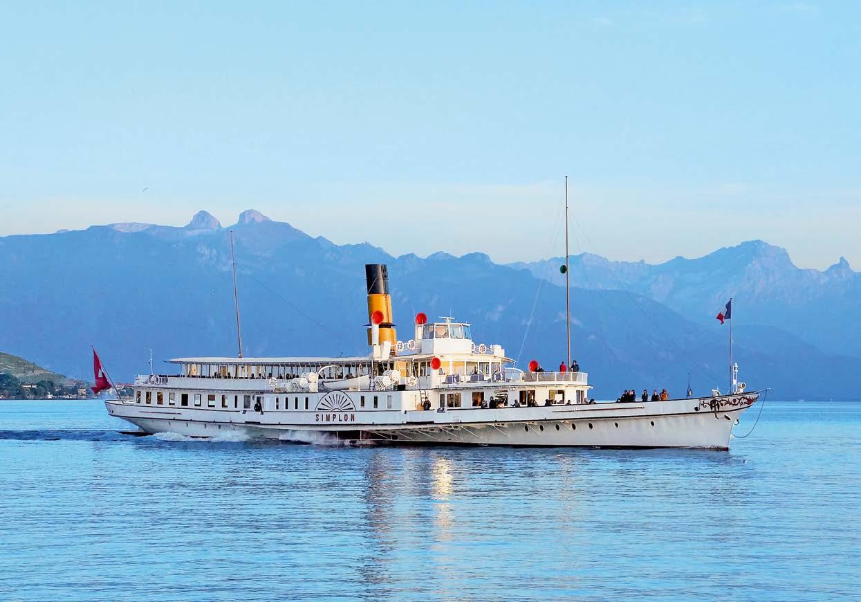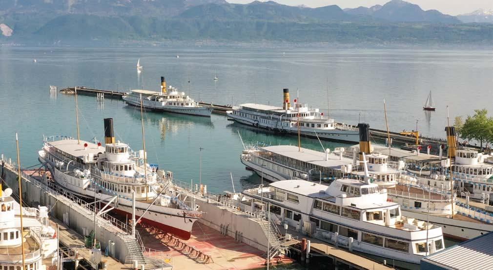 Was wäre der Genfersee ohne seine atemberaubenden Landschaften, seine touristischen Sehenswürdigkeiten und seine historischen Schiffe? Dieses Umfeld lässt sich nirgendwo sonst so eindrucksvoll geniessen wie an Bord dieser Schiffe! Sollten Sie das Glück haben, mit einem der sieben Belle Epoque-Schaufelraddampfer fahren zu dürfen, die dieses Jahr auf dem See verkehren, wartet ein unvergessliches und aus der Zeit gefallenes Erlebnis auf Sie. In dieser Ausgabe präsentieren wir Ihnen die News der CGN, d.h. den Fortschritt beim Bau ihres ersten Schiffs mit Hybridantrieb, der NAVIEXPRESS, aber auch die Geschichte der prestigeträchtigen Belle Epoque-Flotte samt ihren prunkvollen Salons der 1. Klasse. Last but not least blicken wir hinter die Kulissen der Instandsetzung des Dampfschiffs Rhône, das am 15. Februar nach fast dreijährigen Arbeiten wieder seinen Dienst aufnahm. 2022 ist aber auch das Jahr, in dem die ABVL und damit der Hauptpartner der CGN für die Erhaltung ihrer Belle EpoqueFlotte, ihren 20. Geburtstag feiert. Dieser Verein setzt sich zusammen mit der öffentlichen Hand unablässig dafür ein, das dauerhafte Überleben dieses einzigartigen Erbes zu sichern. Seine Geschichte Vereins ist Gegenstand dieser Ausgabe. Wir würden Ihnen natürlich empfehlen, die zahlreichen Kulturschätze des Genfersees, die sich in unmittelbarer Nähe der Anlegestellen der CGN befinden, an Bord eines Schiffes zu erleben.