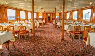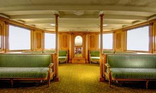 Lieferant: CGN-Werft und Constant Vez (Mobiliar). Holzart: Kirschbaumholz. Holzverkleidungen und Tische aus der damaligen Zeit, Stühle zum Teil original.