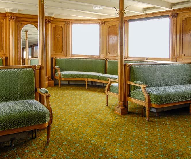 Mit einer Länge von 80 m und einer Dampfmaschine unvergleichlicher Leistungsfähigkeit – im Übrigen die älteste der Flotte – bot das Flaggschiff der Belle Epoque-Flotte seinen Passagieren das Nonplusultra an Luxus und Platz. Daran hat sich bis heute nichts geändert: Das einst erste Schiff dieser Grössenordnung auf einem Schweizer See besitzt den geräumigsten 1. Klasse-Salon der gesamten Flotte. Die aus moiriertem Ahorn gefertigten Holzverkleidungen und Möbel sowie die Intarsien aus Rosenholz stammen allesamt aus der damaligen Zeit. Gleichzeitig ist dies der luxuriöseste Salon der Flotte mit zahlreichen handgeschnitzten Holzelementen, die die Merkmale des Louis-Seize-Stils aufgreifen.