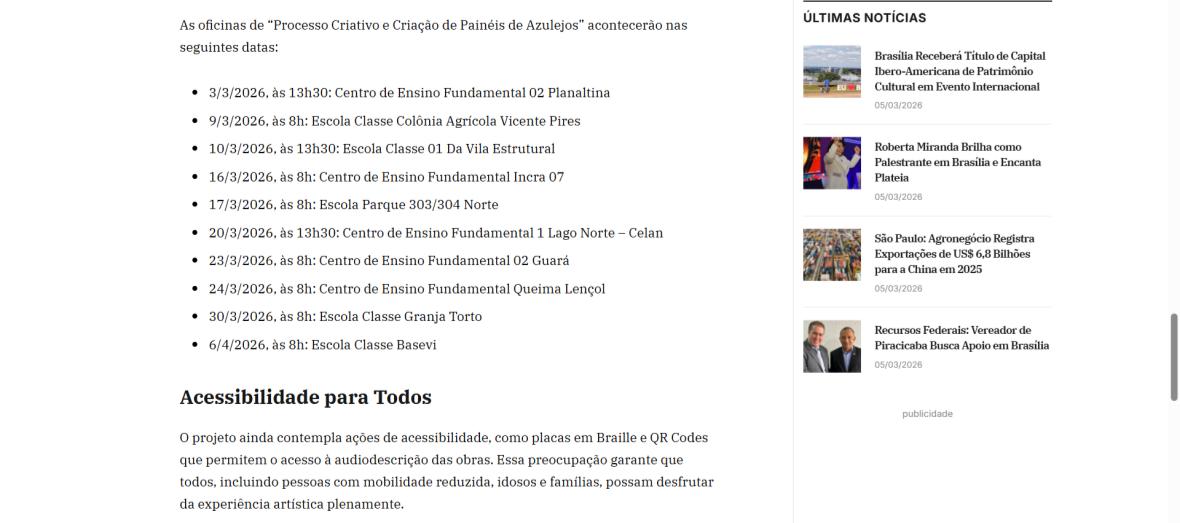 Arte Integração leva oficinas criativas a escolas públicas do DF e transforma desenhos infantis em painéis de azulejos no Parque Nacional – CidadeCULT