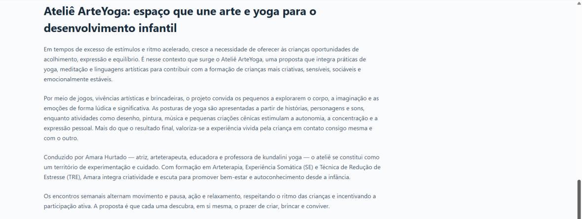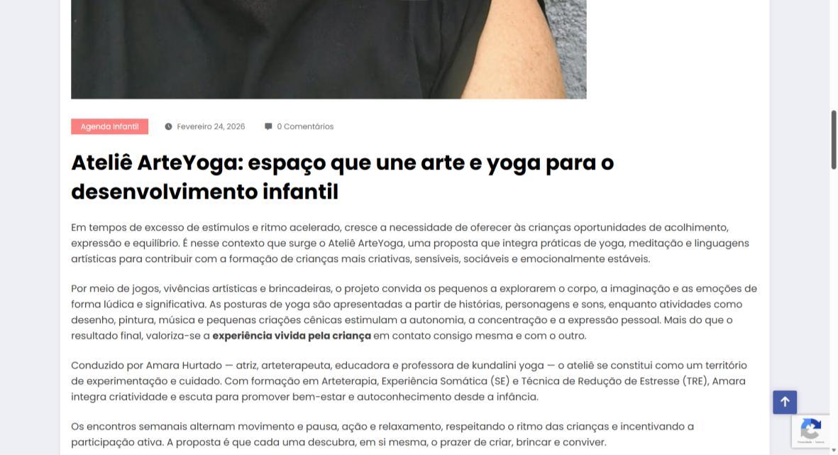 Em tempos de excesso de estímulos e ritmo acelerado, cresce a necessidade de oferecer às crianças oportunidades de acolhimento, expressão e equilíbrio. É nesse contexto que surge o Ateliê ArteYoga, uma proposta que integra práticas de yoga, meditação e linguagens artísticas para contribuir com a formação de crianças mais criativas, sensíveis, sociáveis e emocionalmente estáveis.
