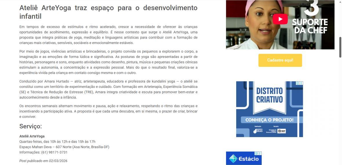 Ateliê ArteYoga traz espaço para o desenvolvimento infantil | Dica DeBoa | DeBoa Brasília