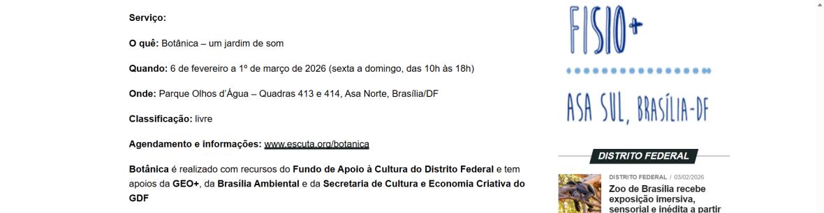Botânica: um jardim de som no parque Olhos D’água - Capital do Entorno