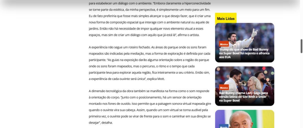 Em um mundo onde a tecnologia muitas vezes nos afasta do natural, o projeto Botânica propõe um reencontro sensível e poético com o ambiente. Imagine caminhar por um parque, entre árvores, sombras e sons da natureza, e descobrir que cada passo pode revelar uma camada invisível de paisagens sonoras, compostas como uma sinfonia escondida no ar. Aqui, o bucólico não é apenas cenário, mas matériaprima para uma experiência de fruição expandida.