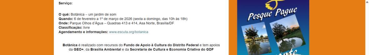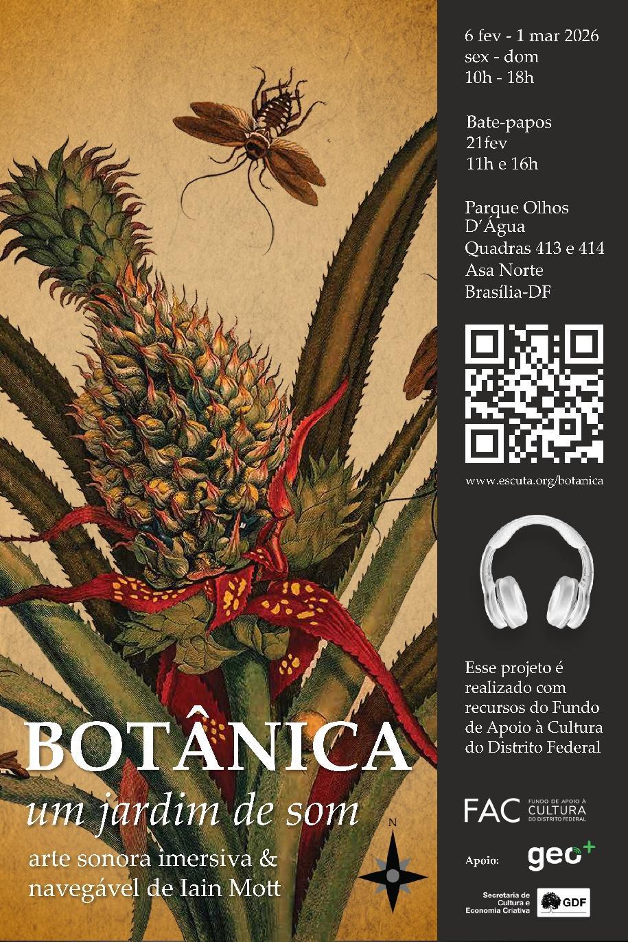 Botânica é realizado com recursos do Fundo de Apoio à Cultura do Distrito Federal e tem apoios da GEO+, da Brasília Ambiental e da Secretaria de Cultura e Economia Criativa do GDF