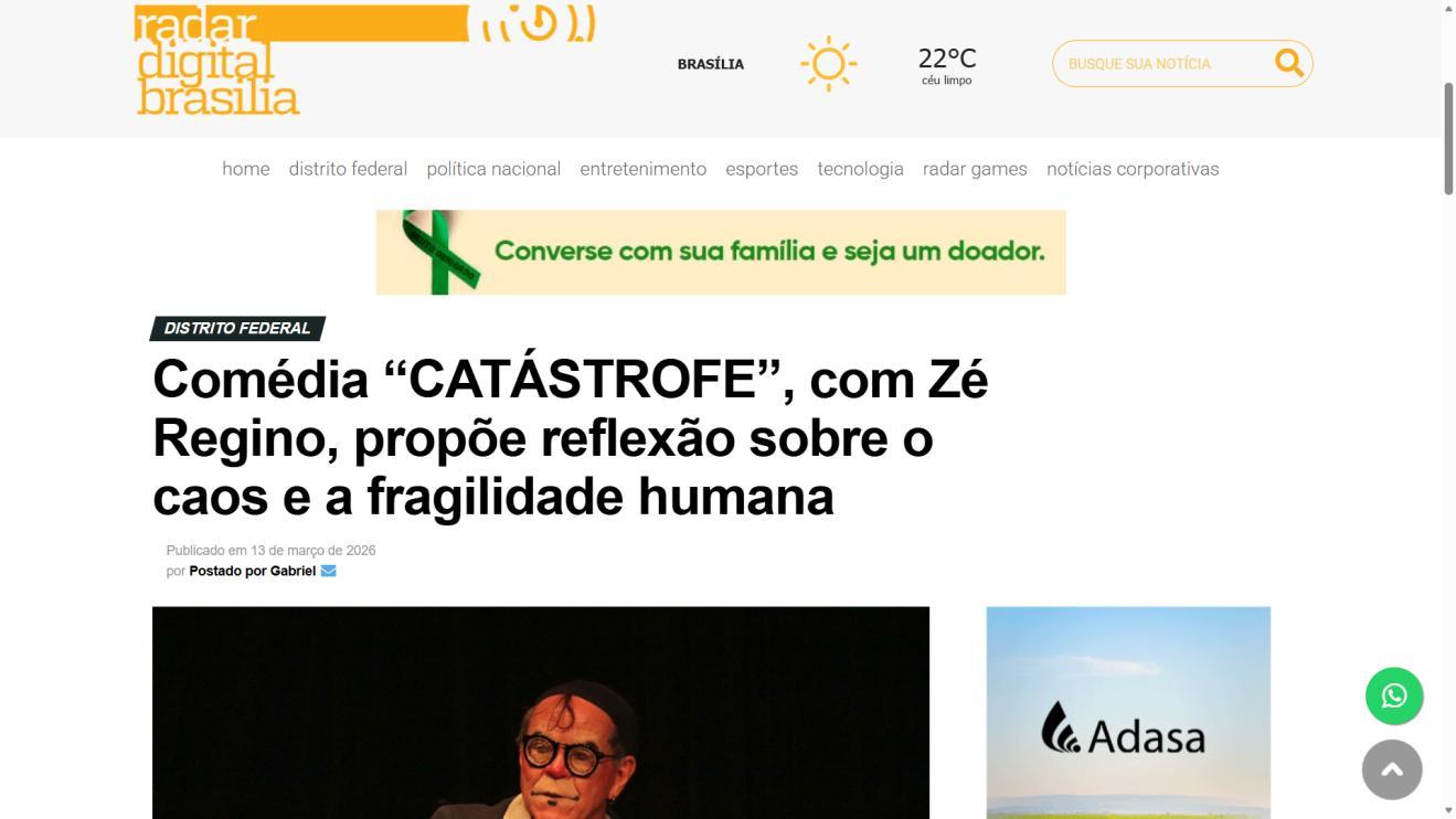 Comédia “CATÁSTROFE”, com Zé Regino, propõe reflexão sobre o caos e a fragilidade humana - RADAR DIGITAL BRASÍLIA