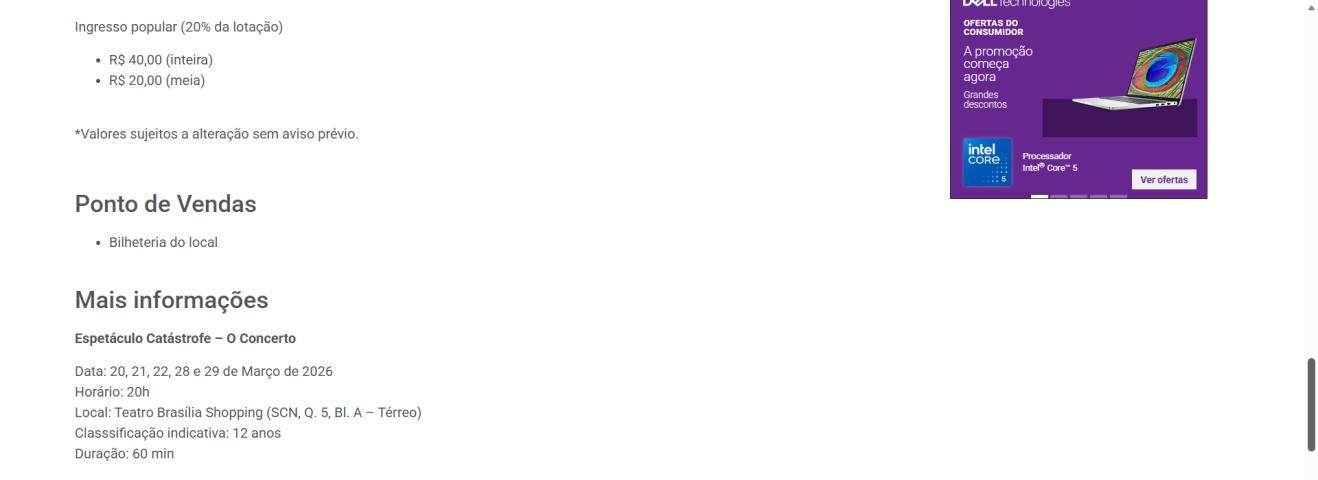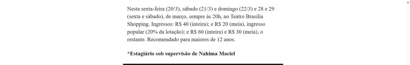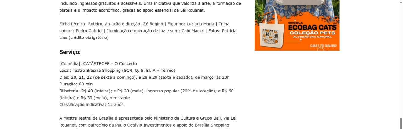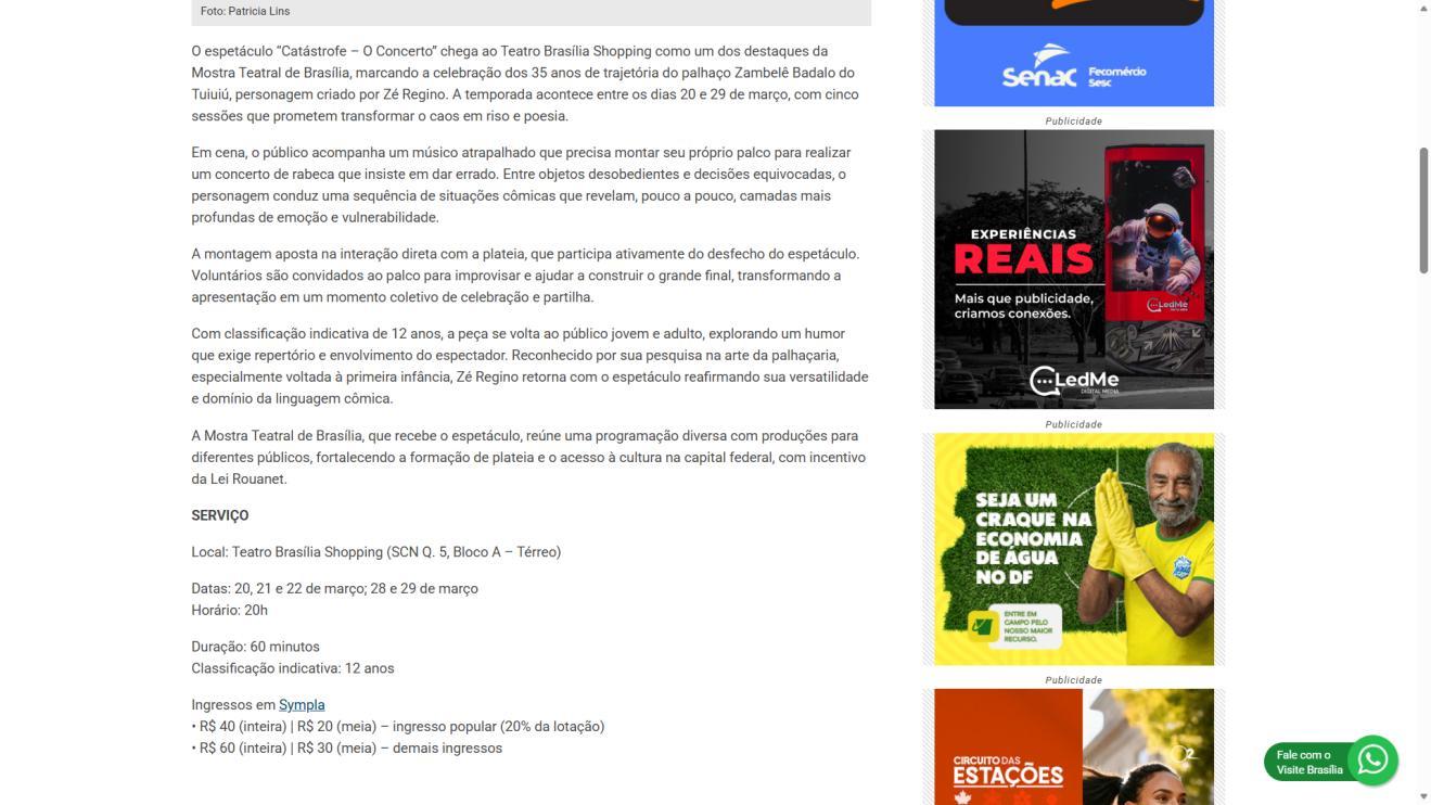Local: Teatro Brasília Shopping (SCN, Q. 5, Bl. A – Térreo)