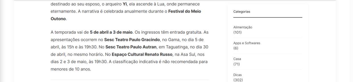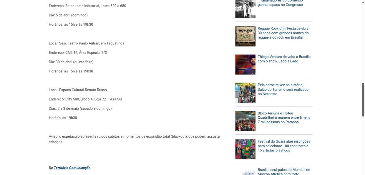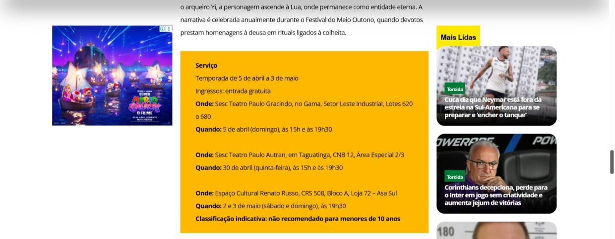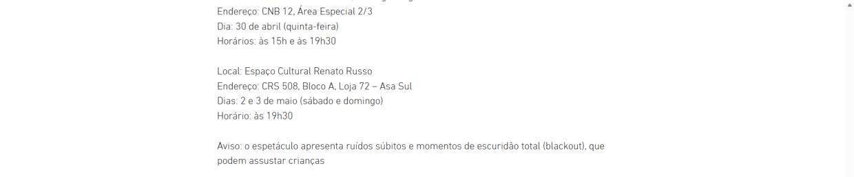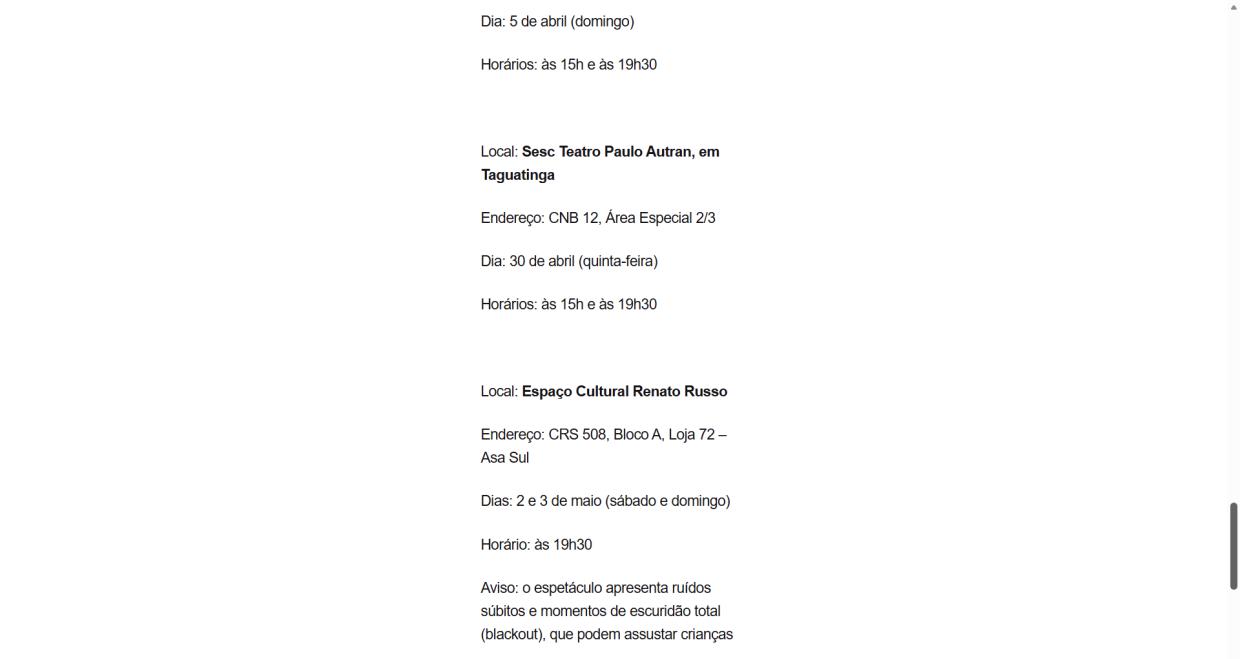 Local: Sesc Teatro Paulo Autran, em Taguatinga