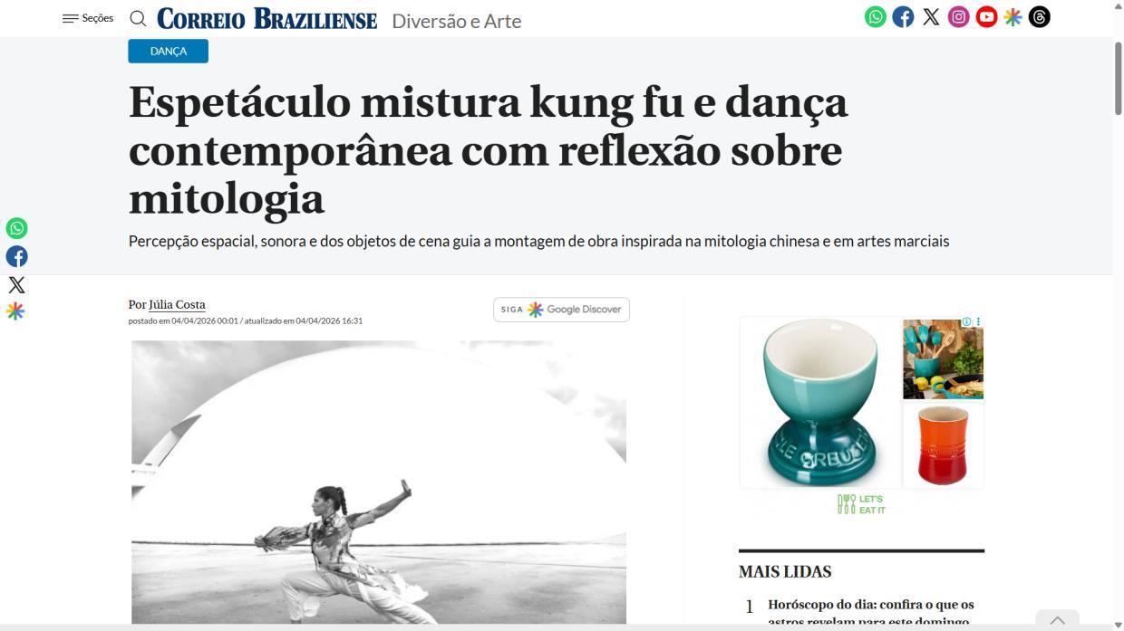 Espetáculo mistura kung fu e dança contemporânea com reflexão sobre mitologia
