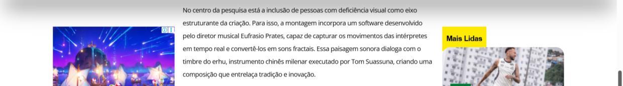 No centro da pesquisa para a construção da obra está a pessoa com deficiência visual, que encontra suporte na tecnologia para apreciar a peça Software esse, desenvolvido pelo diretor musical, Eufrasio Prates, que captura os movimentos em tempo real transformando-os em sons fractais. Essa paisagem sonora, que surge do roteiro que une a sabedoria ancestral do mito e a inovação da exploração espacial, funde-se ao timbre de um instrumento chinês milenar Erhu, tocado por Tom Suassuna.
