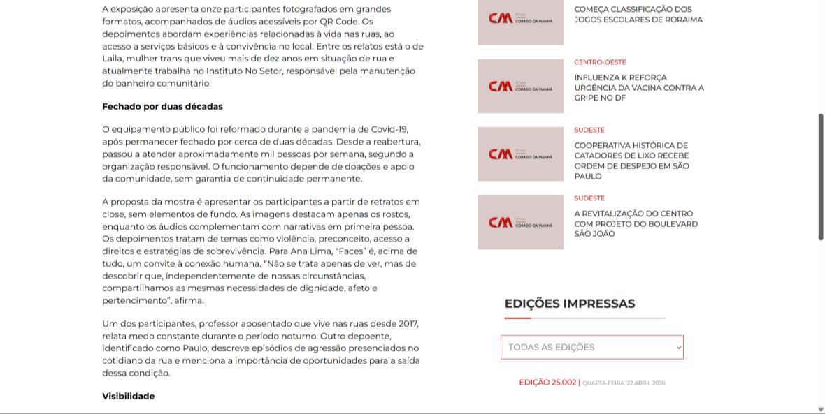 Para Paulo, a exposição é também um lembrete de que o caminho fora da rua é possível mas exige acolhimento. “Se hoje eu tô trabalhando, se hoje eu tô no meu aluguel, é porque teve pessoas que acreditaram em mim e me deram oportunidade. É isso que a rua precisa: gente que acredite nelas, que dê oportunidade e abra a porta.”