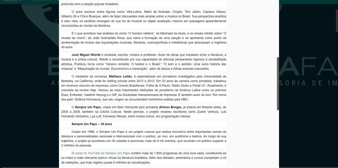 Escritor e músico José Miguel Wisnik lança livro “Viagem do recado” no Sempre Um Papo em Brasília - RADAR DIGITAL BRASÍLIA