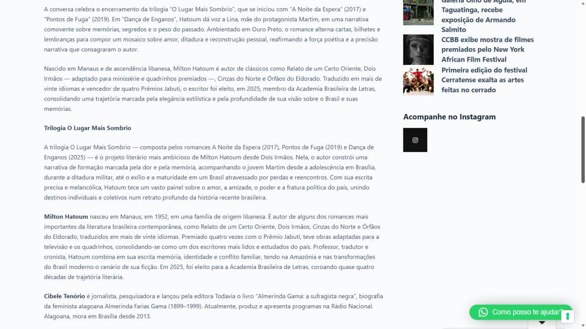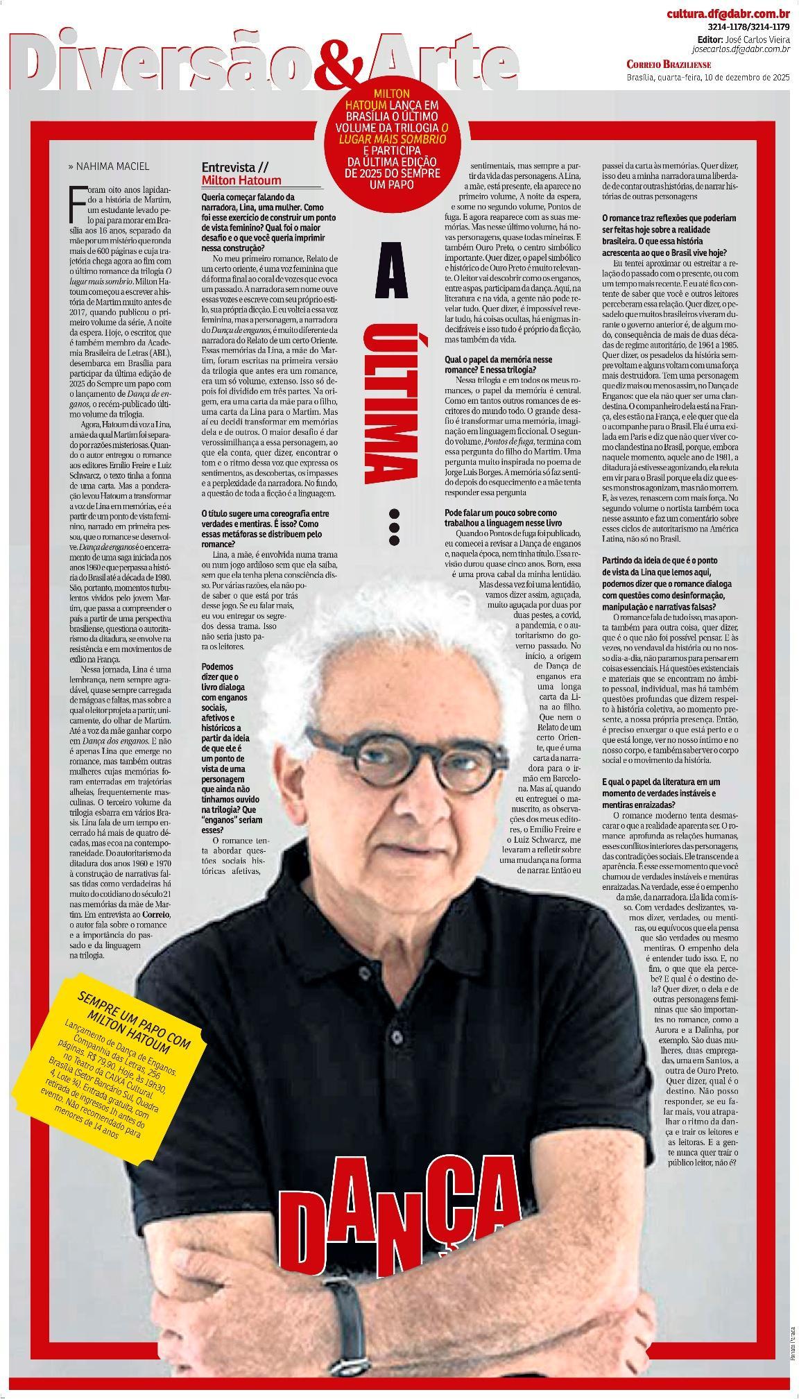 A conversa celebra o encerramento da trilogia “O Lugar Mais Sombrio”, que se iniciou com “A Noite da Espera” (2017) e “Pontos de Fuga” (2019). Em “Dança de Enganos”, Hatoum dá voz a Lina, mãe do protagonista Martim, em uma narrativa comovente sobre memórias, segredos e o peso do passado. Ambientado em Ouro Preto, o romance alterna cartas, bilhetes e lembranças para compor um mosaico sobre amor, ditadura e reconstrução pessoal, reafirmando a força poética e a precisão narrativa que consagraram o autor.