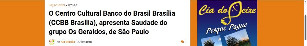 O Centro Cultural Banco do Brasil Brasília (CCBB Brasília), apresenta Saudade do grupo Os Geraldos, de São Paulo - Blog da Zuleika