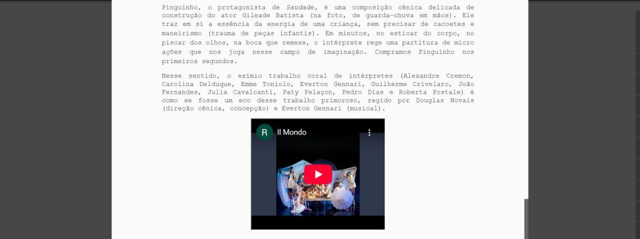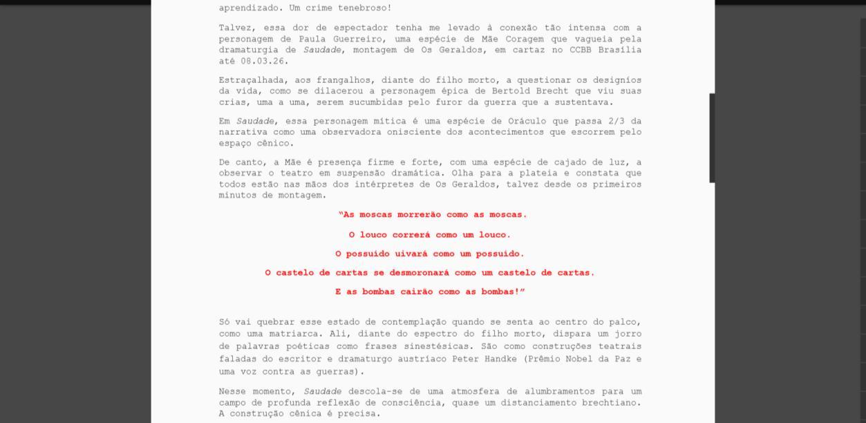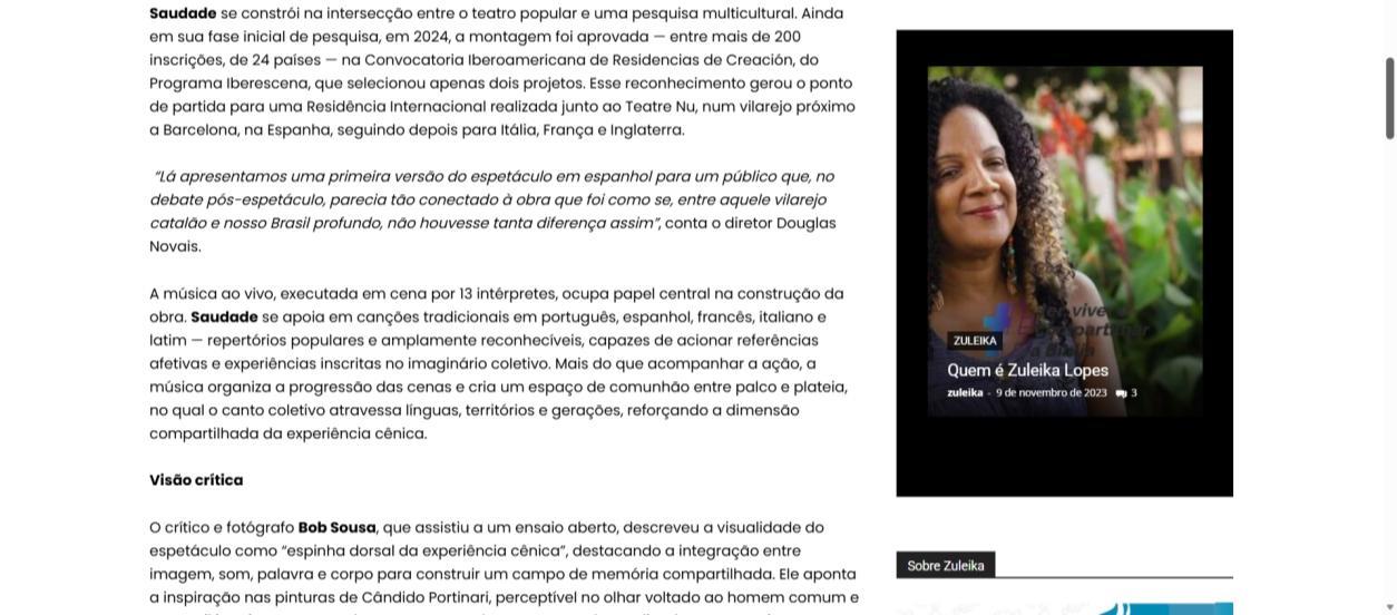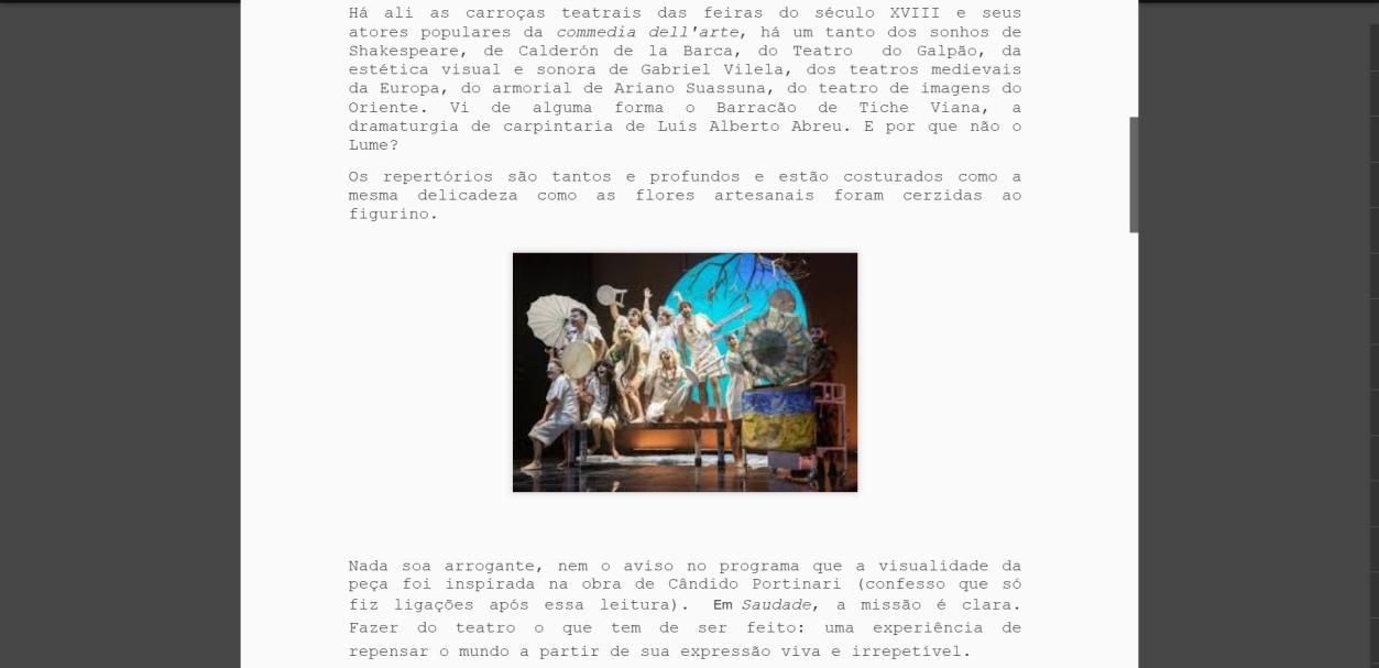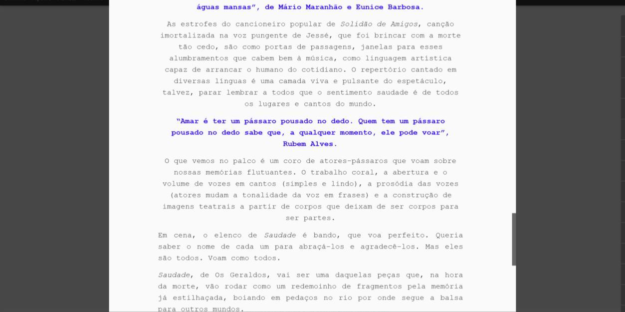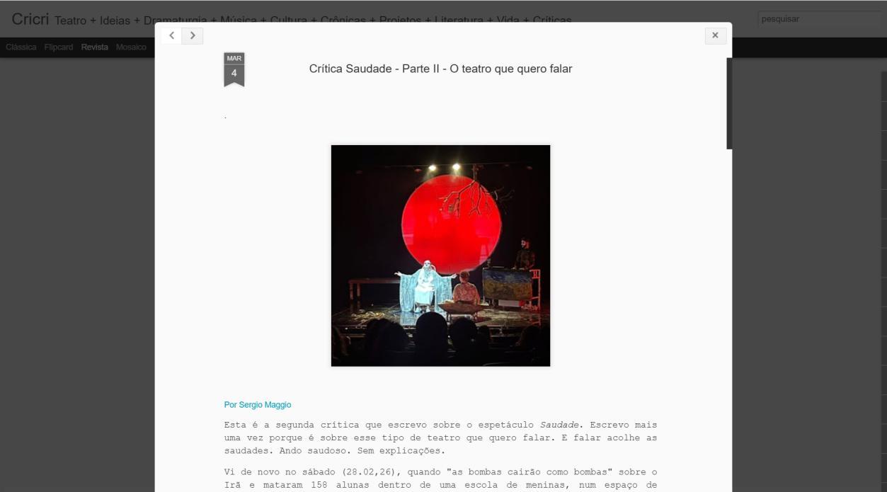 Crítica Saudade - Parte II - O teatro que quero falar | Cricri