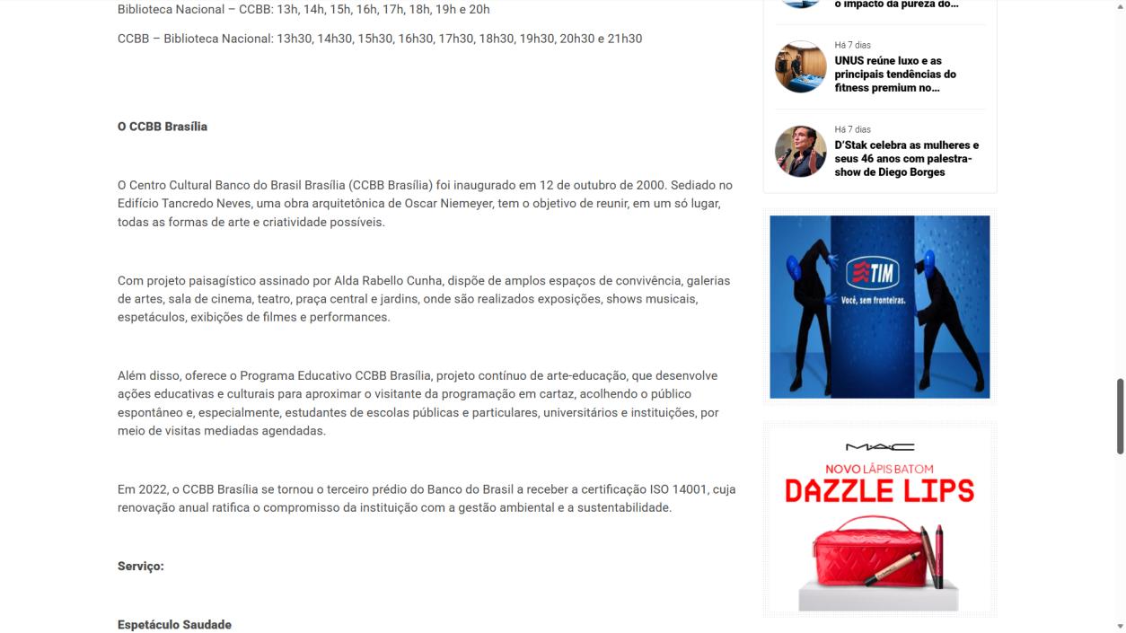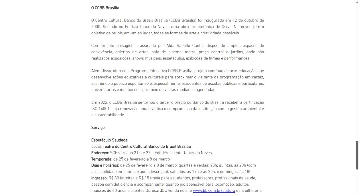 Última semana no Centro Cultural Banco do Brasil Brasília (CCBB Brasília): - Portal Indica Brasília