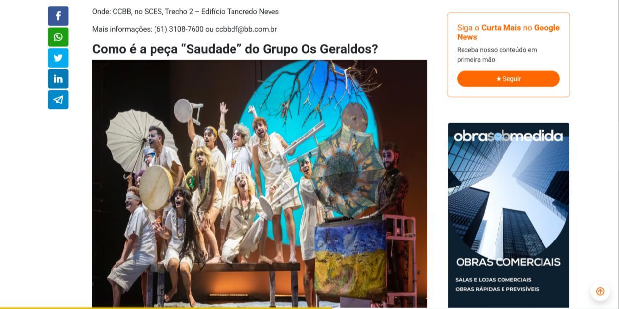 CCBB Brasília recebe espetáculo “Saudade”, do grupo paulista Os Geraldos - CidadeCULT
