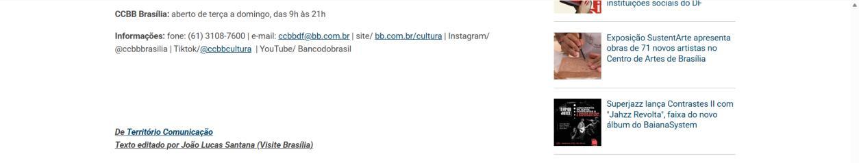 Assessoria de imprensa do CCBB Brasília: Jamerson de Sousa Costa, jamersoncosta@bb.com.br; (61) 3108-7600 | (61) 98147-3594