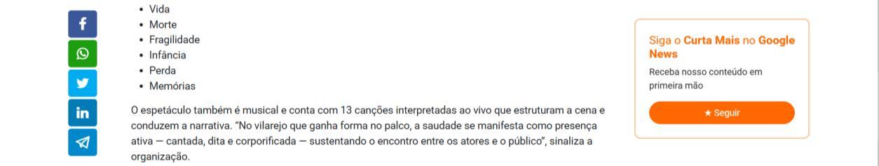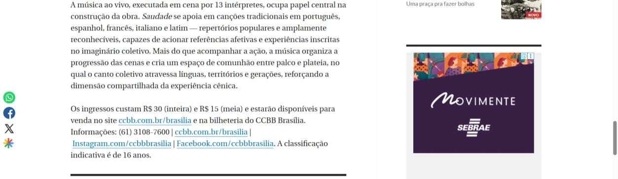 Espetáculo “Saudade” chega ao CCBB Brasília com música ao vivo e teatro popular - Agita Brasília