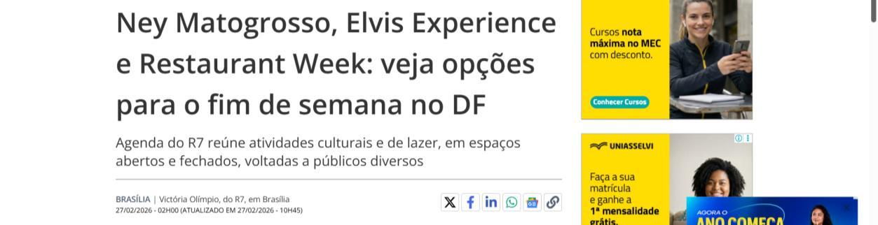 Ney Matogrosso, Elvis Experience e Restaurant Week: veja opções para o fim de semana no DF – Noticias R7