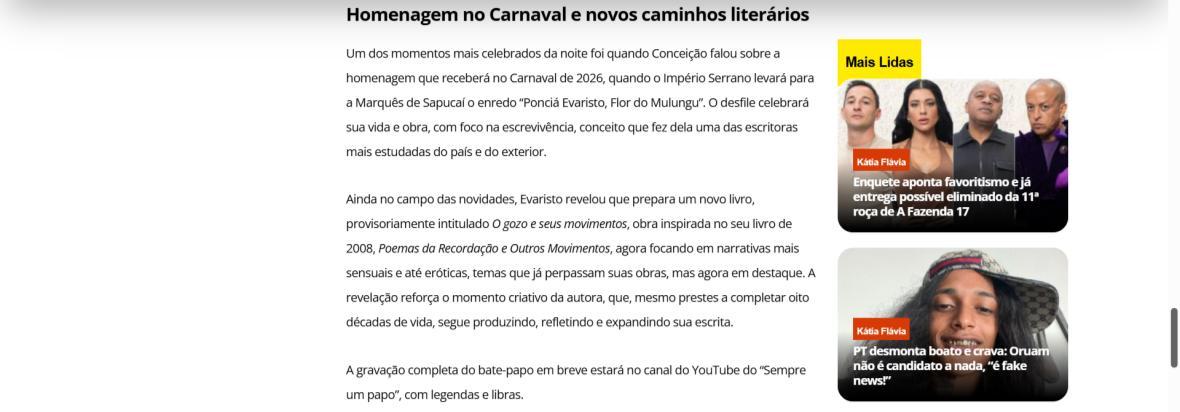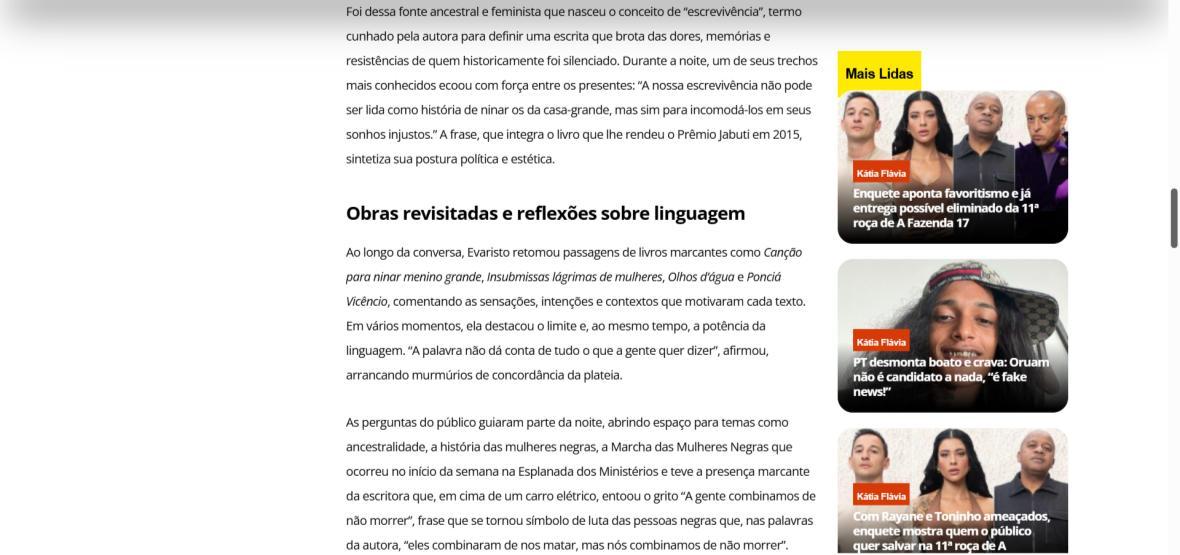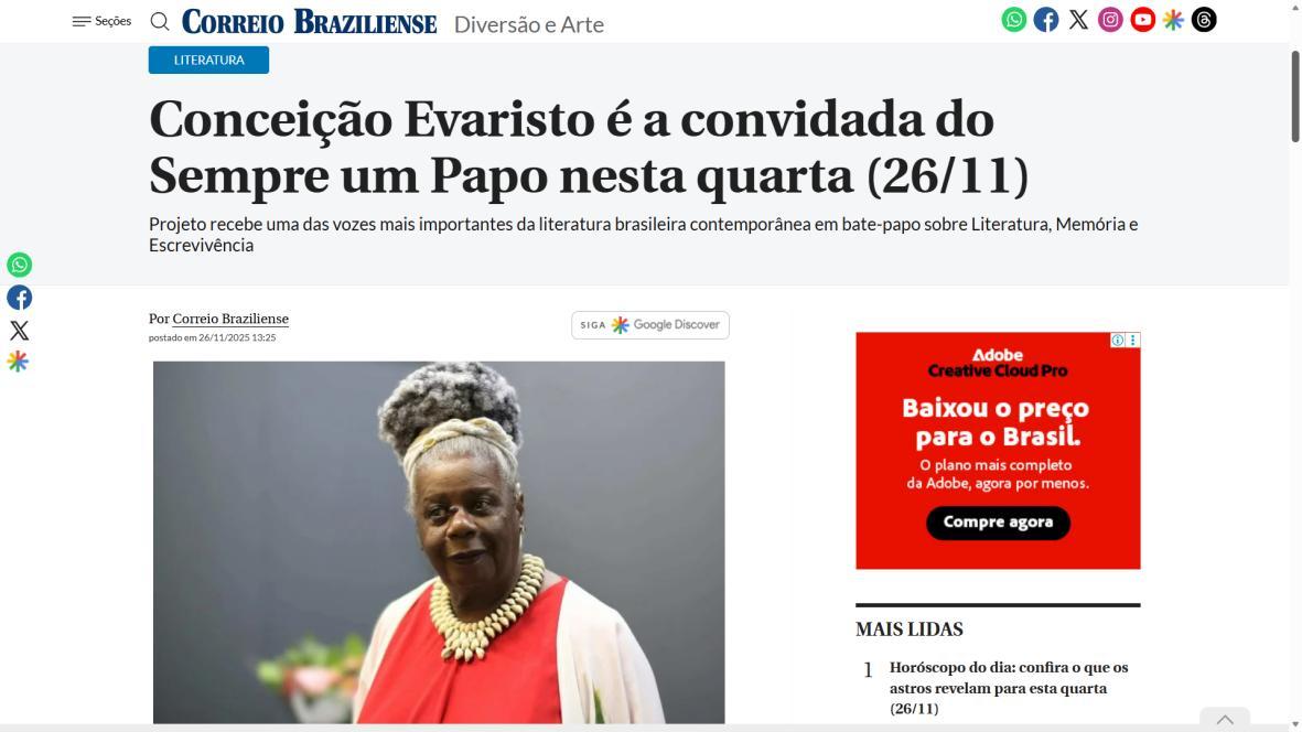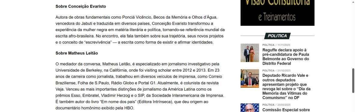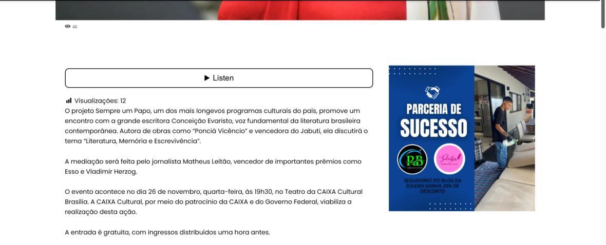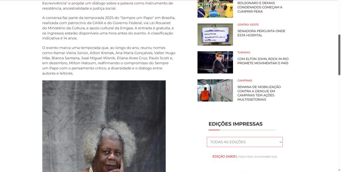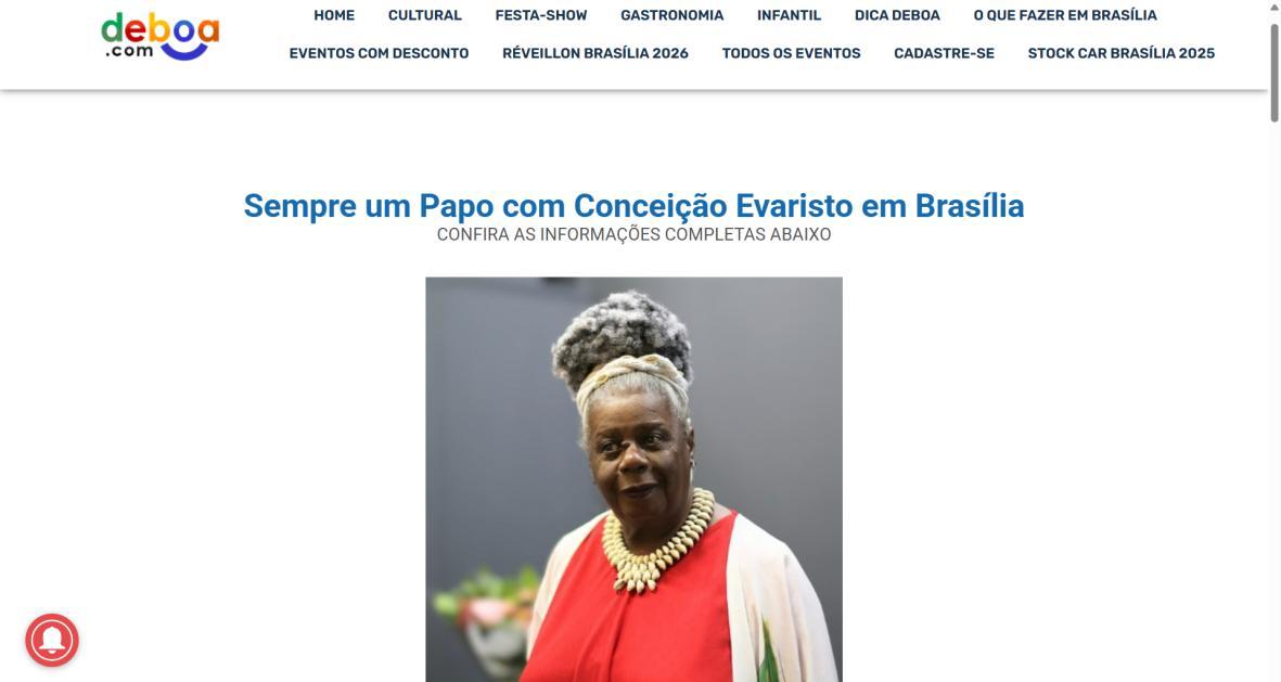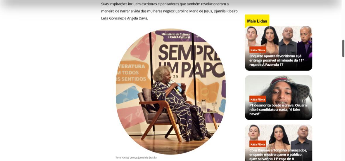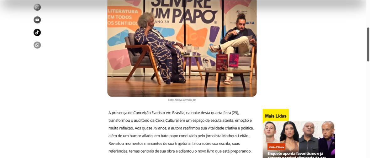 Conceição Evaristo participa do Sempre um Papo em Brasília com debate sobre literatura, memória e escrevivência - CidadeCULT
