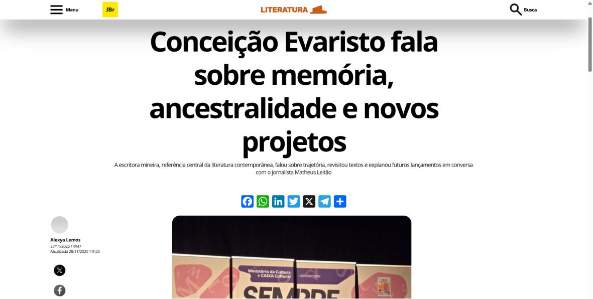 BRASILIANAS | Conceição Evaristo, hoje, em um papo sobre 'Literatura, Memória e Escrevivência'