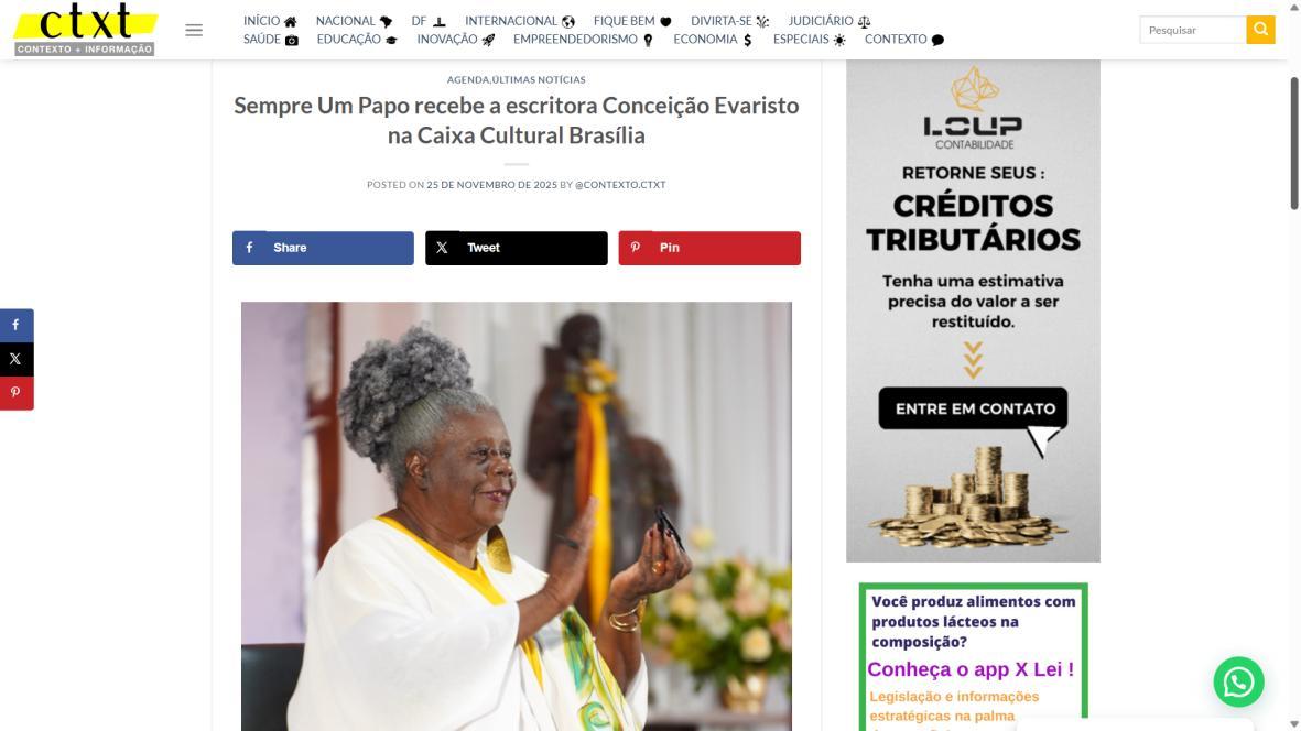 Sempre Um Papo recebe a escritora Conceição Evaristo na Caixa Cultural BrasíliaPortal Contexto