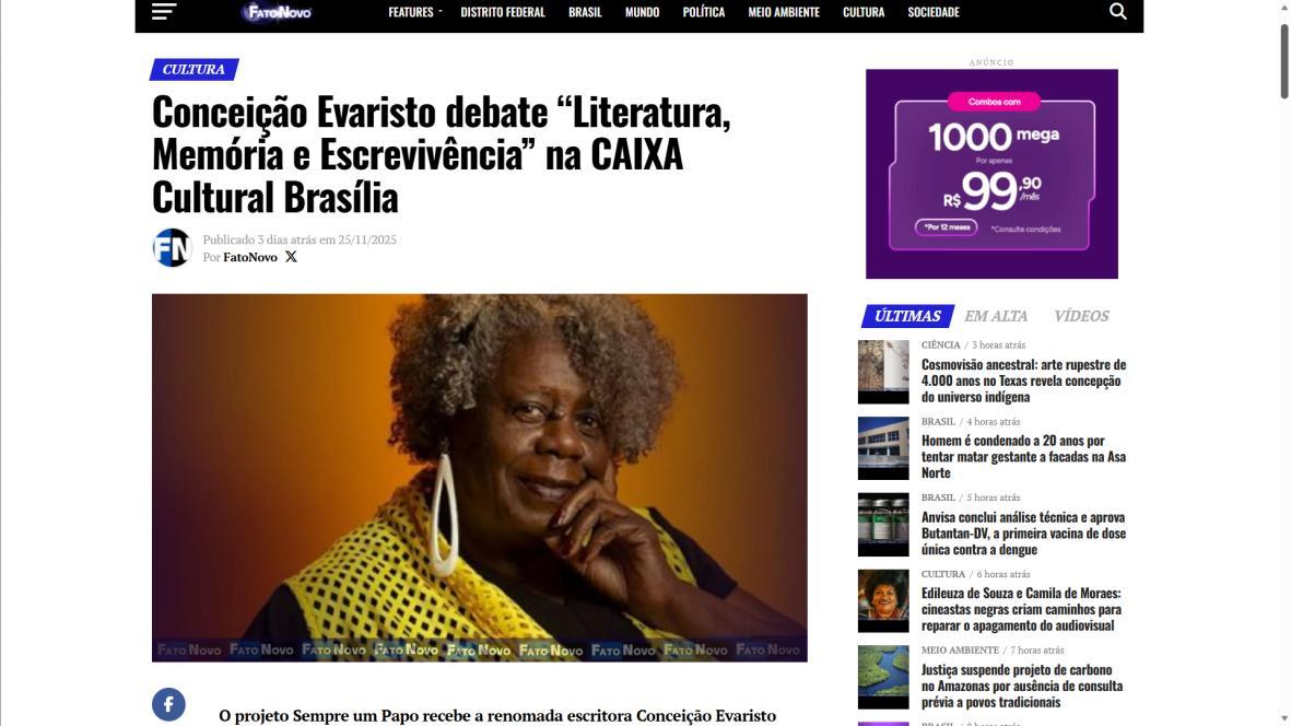 Conceição Evaristo debate “Literatura, Memória e Escrevivência” na CAIXA Cultural Brasília - Fato Novo