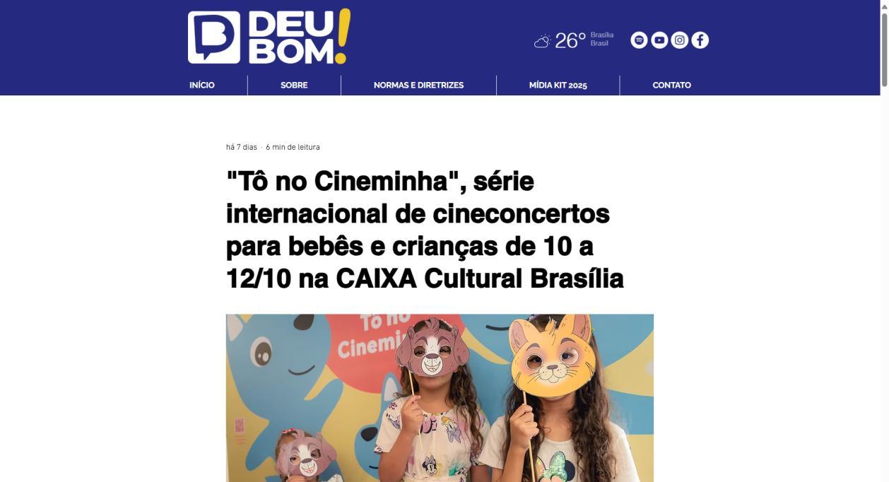 no Cineminha", série internacional de cineconcertos para bebês e crianças de 10 a 12/10 na CAIXA Cultural Brasília - RADAR