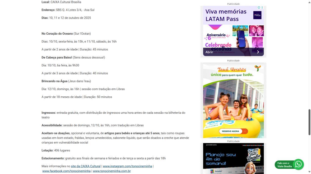 Realizado pela primeira vez em 2023, com grande sucesso e também na CAIXA Cultural Brasília, o Tô no Cineminha acompanha bebês e crianças nas suas primeiras emoções com a sétima arte. Com atividades gratuitas sendo sessões, brincadeiras e jogos lúdicos, além de oficina, o projeto volta a movimentar CAIXA Cultural entre os dias 10 e 12 de outubro, sexta, sábado e domingo