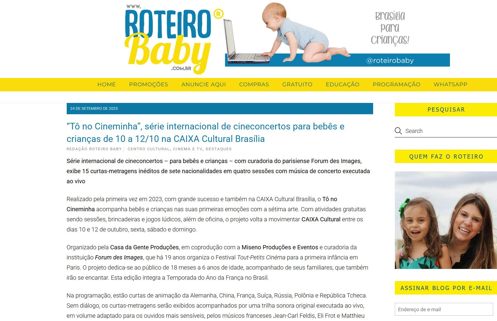 A Casa da Gente Produções e Editora (Niterói, RJ) e a Miseno Produções e Eventos (Rio de Janeiro, RJ) são empresas associadas desde 2019 e dirigidas, respectivamente, por Luana Dias e Cristiana Giustino, produtoras culturais com mais de 20 anos de atuação nos segmentos audiovisual, artes visuais e artes cênicas. Juntas, realizaram a primeira edição de Tô no Cineminha (Caixa Cultural Brasília, 2023), a Mostra Cinema Sem Diferenças (Niterói, 2022 e 2019), com filmes internacionais que tratam de variados tipos de deficiência, mostra FESTin ON Niterói (2021), que promoveu exibições e intercâmbio entre realizadores de língua portuguesa do exterior e realizadores de Niterói, além do projeto A história de Ayana (2024 e 2025), que inclui um curta-metragem em animação já exibido em quase 10 festivais pelo Brasil, e a leitura dramatizada desta obra literária voltada para o público infantil.