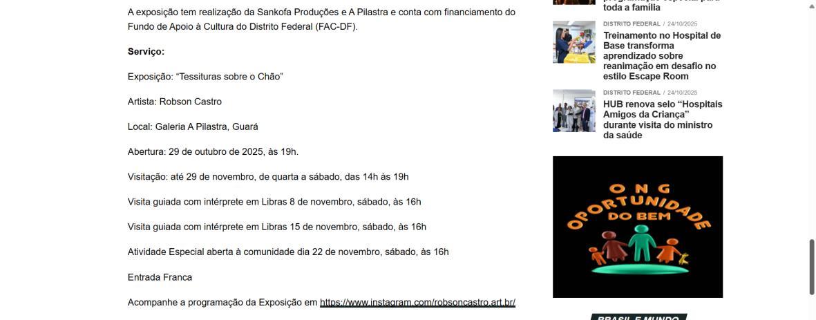 Robson Castro apresenta exposição Tessituras sobre o Chão no Guará - Jornal do Guará