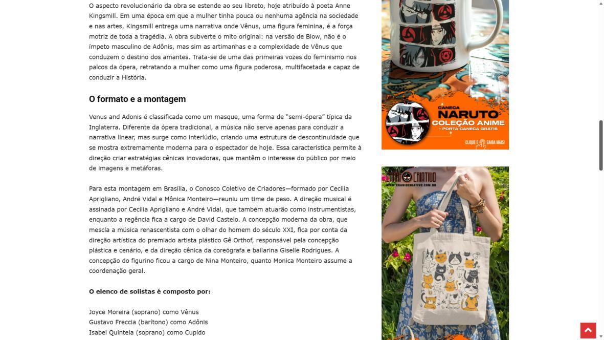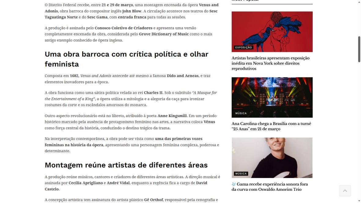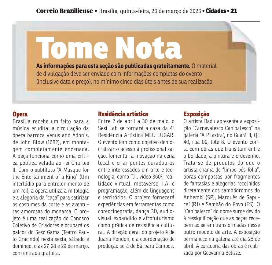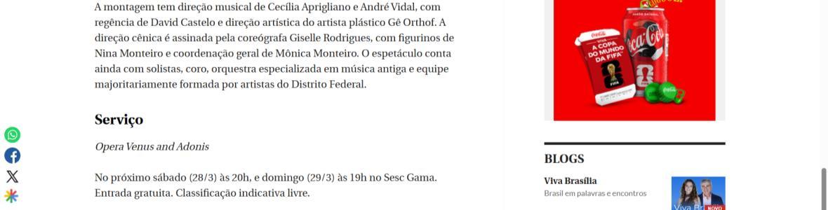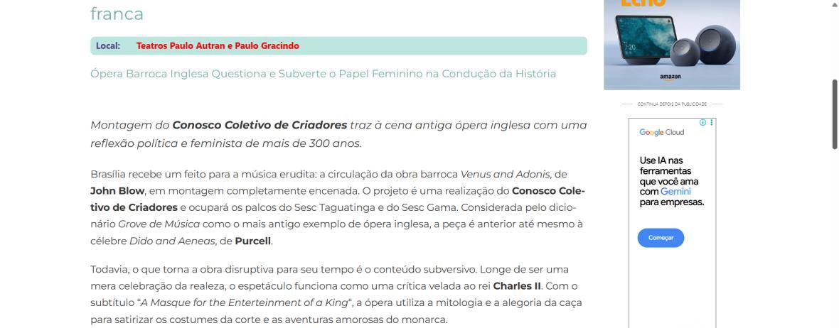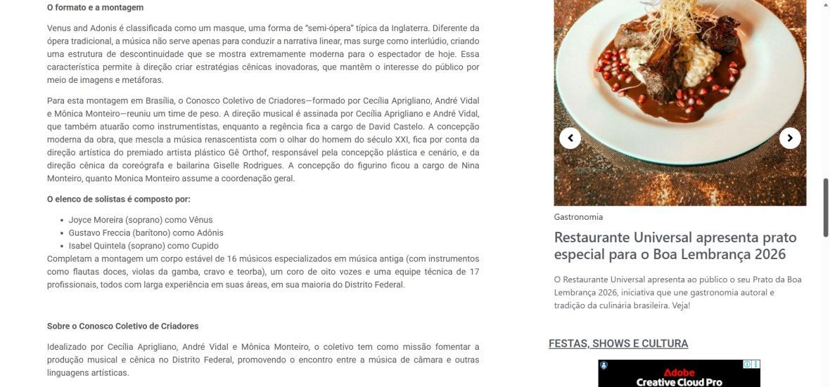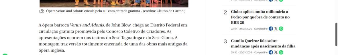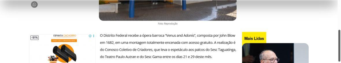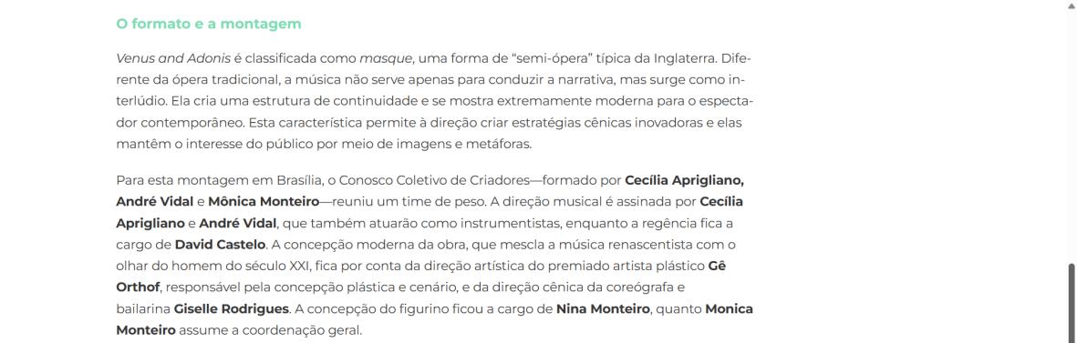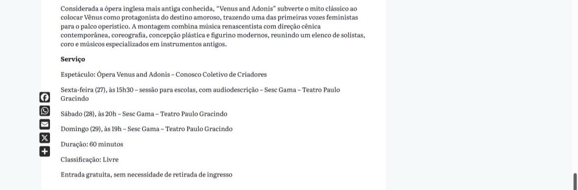 Olá, é um prazer imenso falar contigo, ouvinte da Cultura FM. Aqui é [nome do integrante], do Conosco Coletivo de Criadores, e venho te convidar para conferir um projeto pra lá de especial: a reestreia da ópera barroca Venus and Adonis aqui no Distrito Federal.