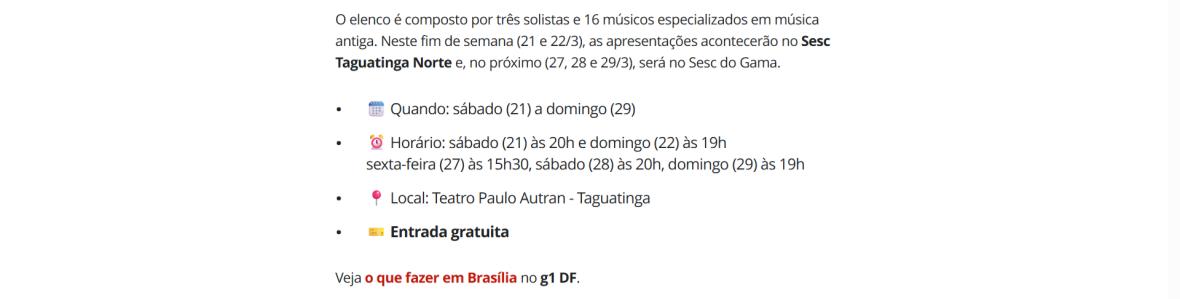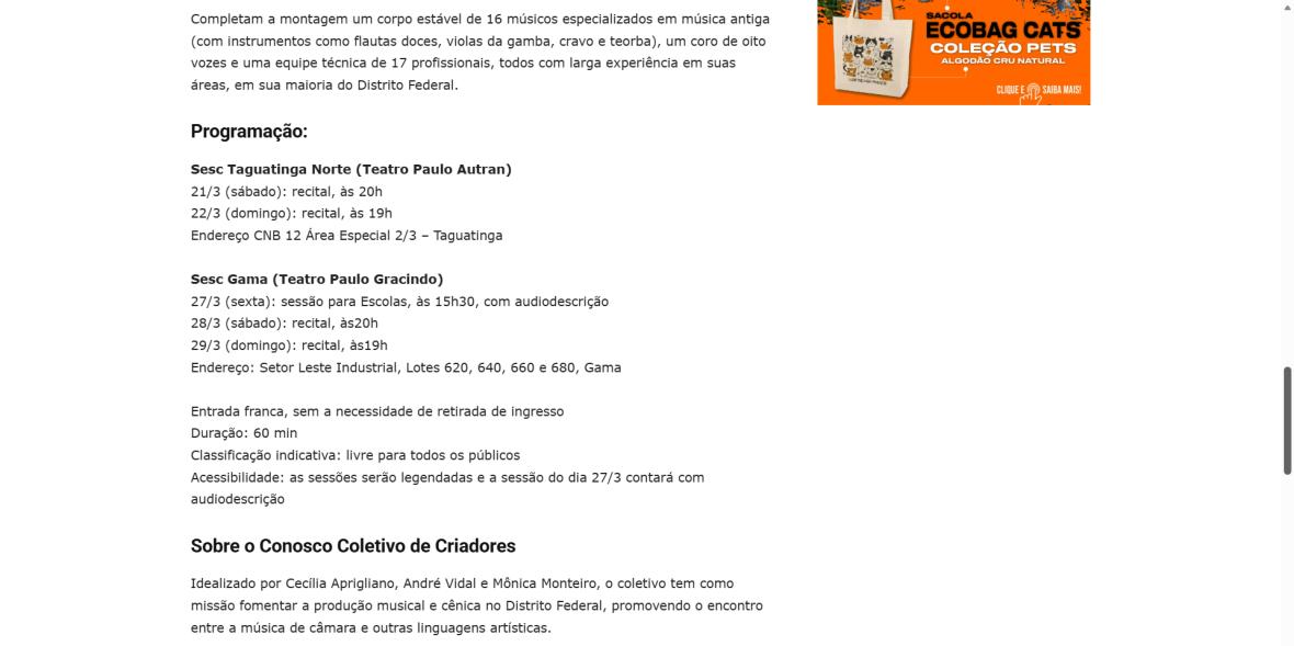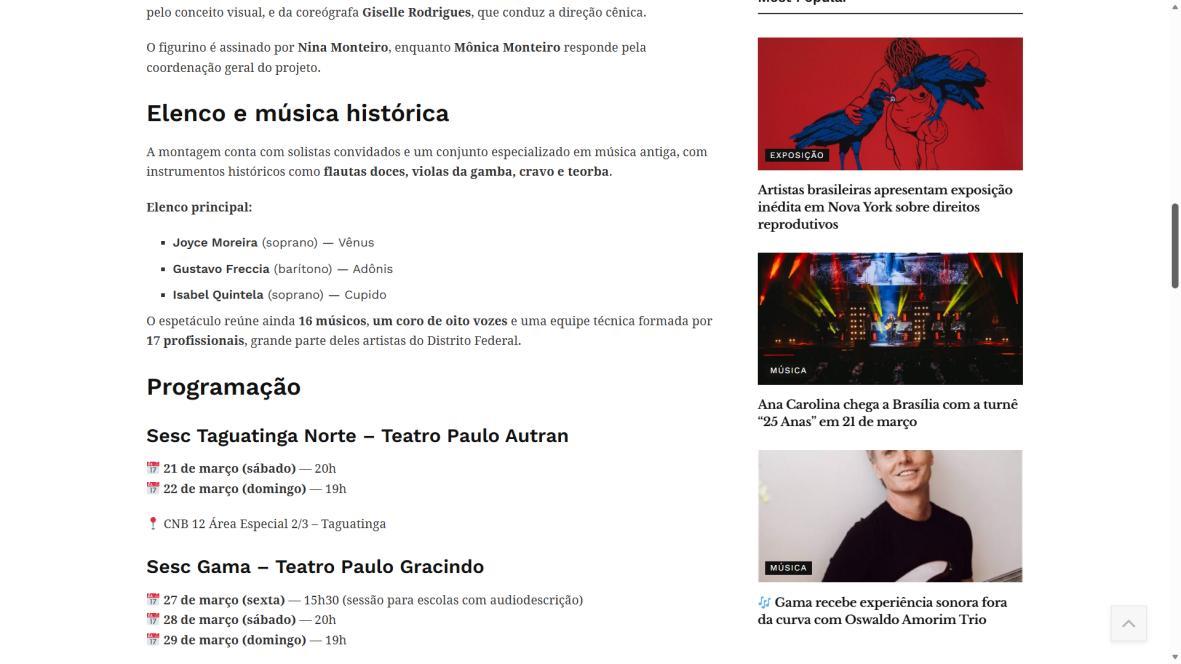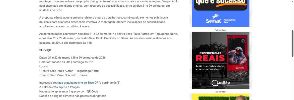 É uma oportunidade rara de ver uma ópera de mais de 300 anos, produzida aqui no DF, com acesso gratuito e uma sensibilidade bem atual. Esperamos vocês!