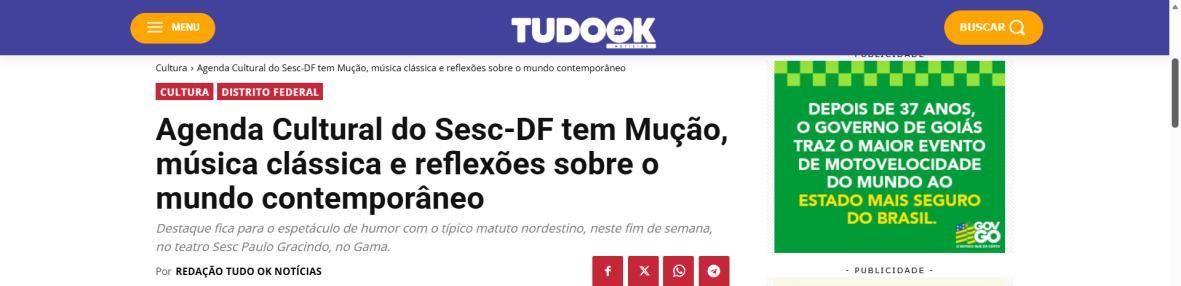 Agenda Cultural do Sesc-DF tem Mução, música clássica e reflexões sobre o mundo contemporâneo | Tudo ok Notícias