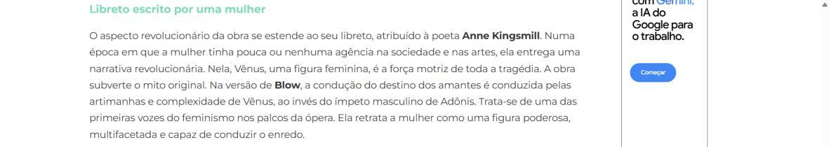 Essa ópera inglesa de 1682, do compositor John Blow, é considerada a mais antiga do gênero. E não é apenas uma relíquia: por trás da música, há uma história subversiva, com um texto escrito por uma mulher, Anne Kingsmill, que coloca Vênus como protagonista da tragédia uma raridade para a época. E é justamente esse olhar feminista e crítico que trazemos para a montagem que você vai conferir.