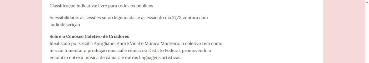 • 27/3 (sexta): sessão para Escolas, às 15h30, com audiodescrição