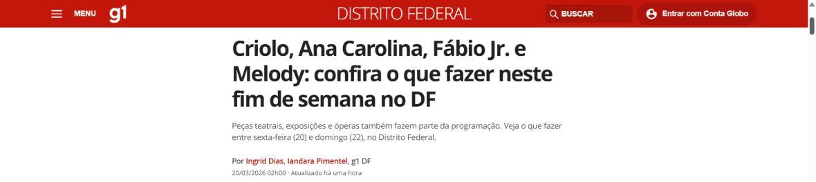 O que fazer no DF: Shows de Fábio Jr., Ana Carolina e Criolo | G1