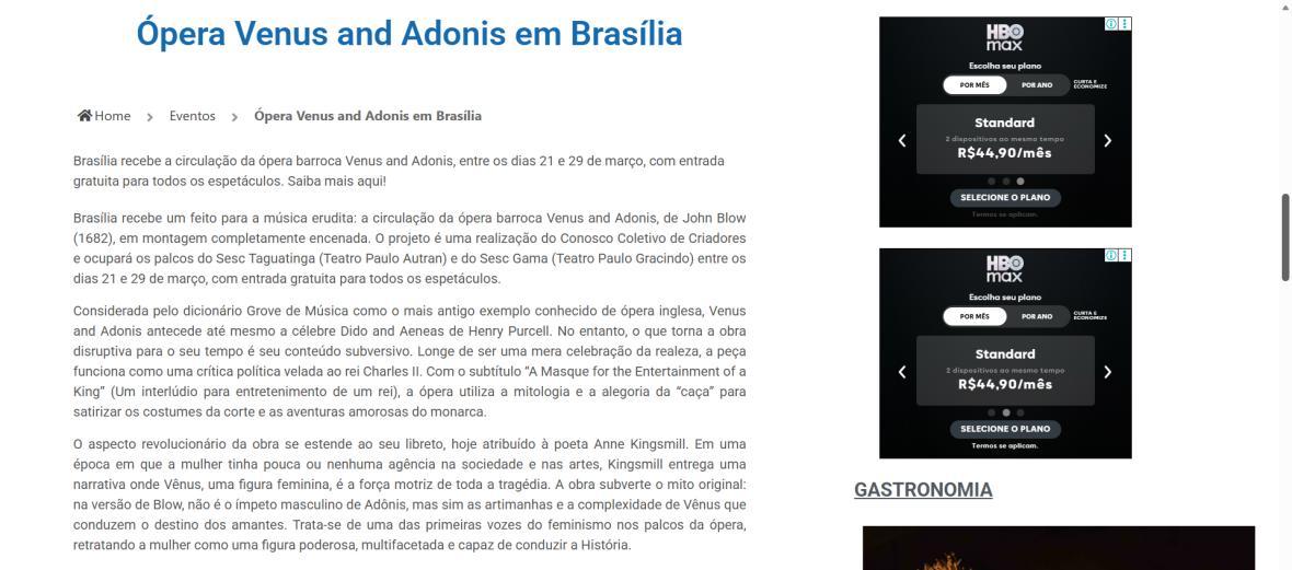 Ópera Venus and Adonis em Brasília | DeBoa Brasília
