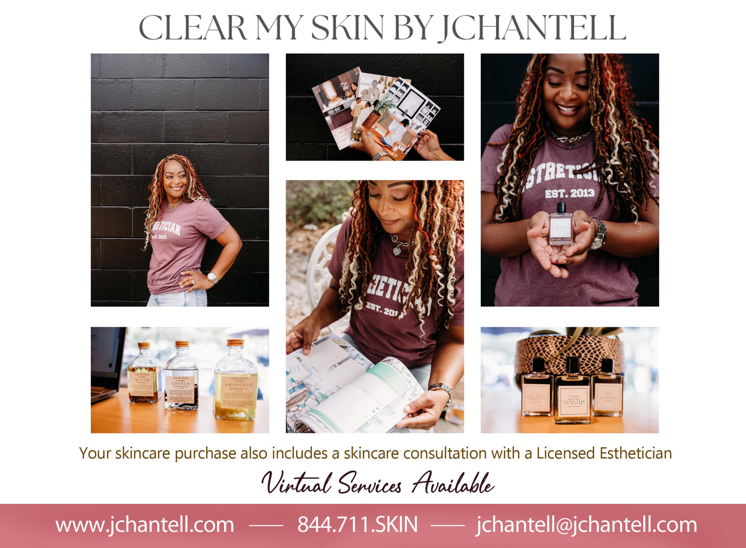 The name of her business is Clear My Skin by JChantell. She shares how her journey in business began as a young girl who was impressed by the presence and sophistication of her mother. “I remember smelling my mom’s clothes in her closet. That was my first love of fragrance. I would watch her get ready to go out with her girlfriends, and she had her skincare and makeup application down to a science. First her skincare routine, followed by her makeup then her clothes selection and last, her perfume scent. As a teenager, I had acne issues, and the first skin care product I used was Noxzema. No moisturizer, exfoliant, mask, or sunscreen - just noxema. It worked okay on my skin, and at the time, I didn’t know or understand I needed a routine rather than one product. It was then I developed my interest in skincare. The more I explored and experimented with different products, the more I wanted to know about skincare and skin health,” she says. Her interest would soon develop into a career involving skin care and Esthetics.