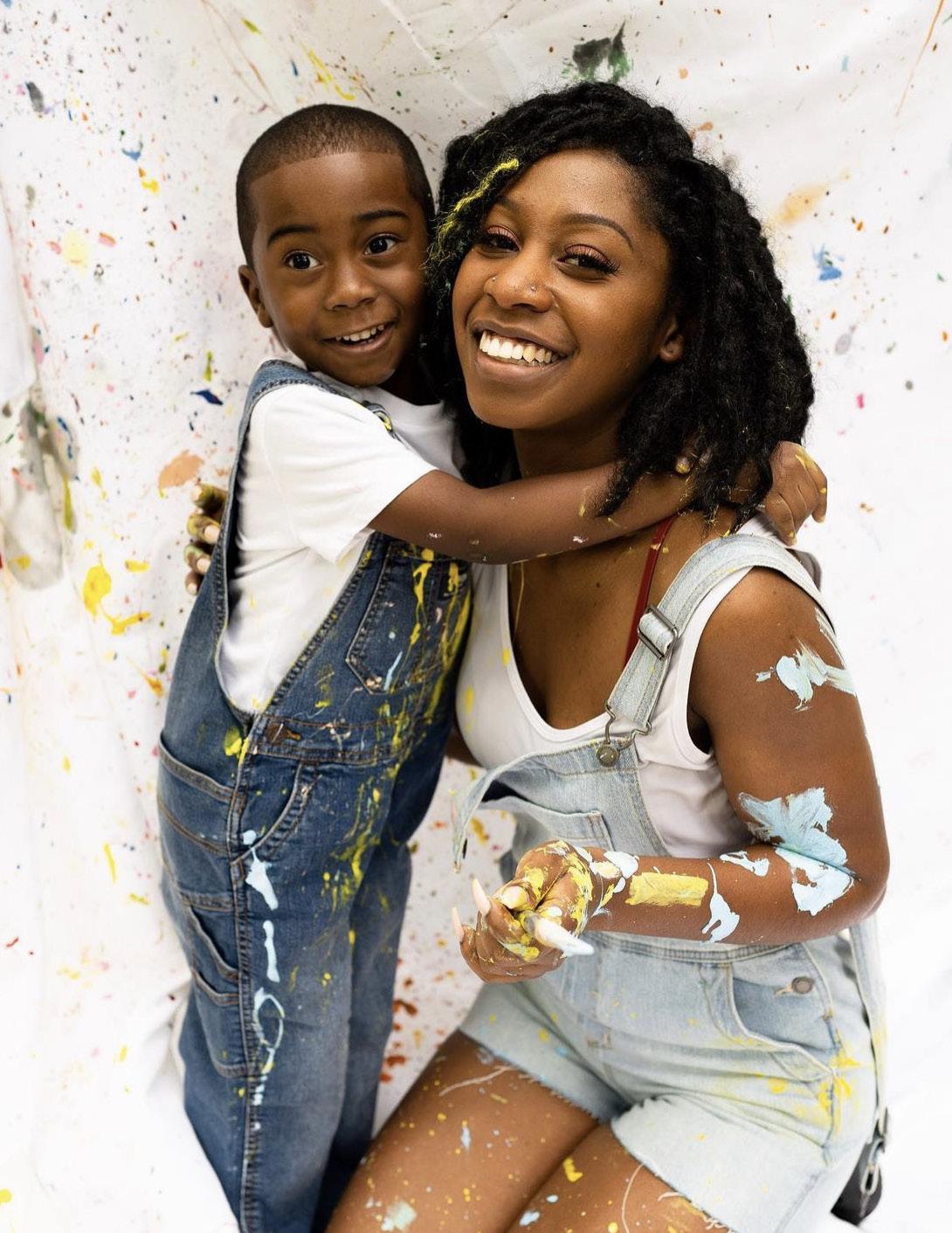 While the prospect of being home with her child, she says, was beautiful, it also brought to the forefront the challenges of her personal healing journey. Monèt grappled with anxiety, trying to connect with her child while simultaneously dealing with the physical, mental, and emotional toll of her recovery. Upon returning to work, she found herself caught in a balancing act, juggling motherhood, a full-time job, and the dream of building a business. The demanding schedule left little time for self-care, and the guilt of spending precious moments away from her son weighed heavily on Monèt. “In an effort to spend more quality time with my child, we began painting together. These creative experiences not only provided an outlet for reducing my stress and anxiety but also forged a profound connection with him,” Monèt says.