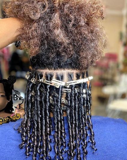 She started her business in 2016, and shares that she could only do retwists and didn’t know how to start locs. She promoted her services on social media, encouraging those who needed to get their locs retwisted to get them done with her. One of her friends coined the term “Re By Bre,” and she stuck with it. “I could never do hair before I started doing locs. It began while I was involved in a bad relationship. The person I was dating was unfaithful, and I didn’t trust him to get his hair styled by someone else, so I taught myself how to do it. It was a tough experience, and it took me a long time to finish the task. So, I reached out to someone locally who was well known in the loc community. Their feedback wasn’t promising, and instead of allowing that to discourage me, I became more determined to master my craft,” she says.