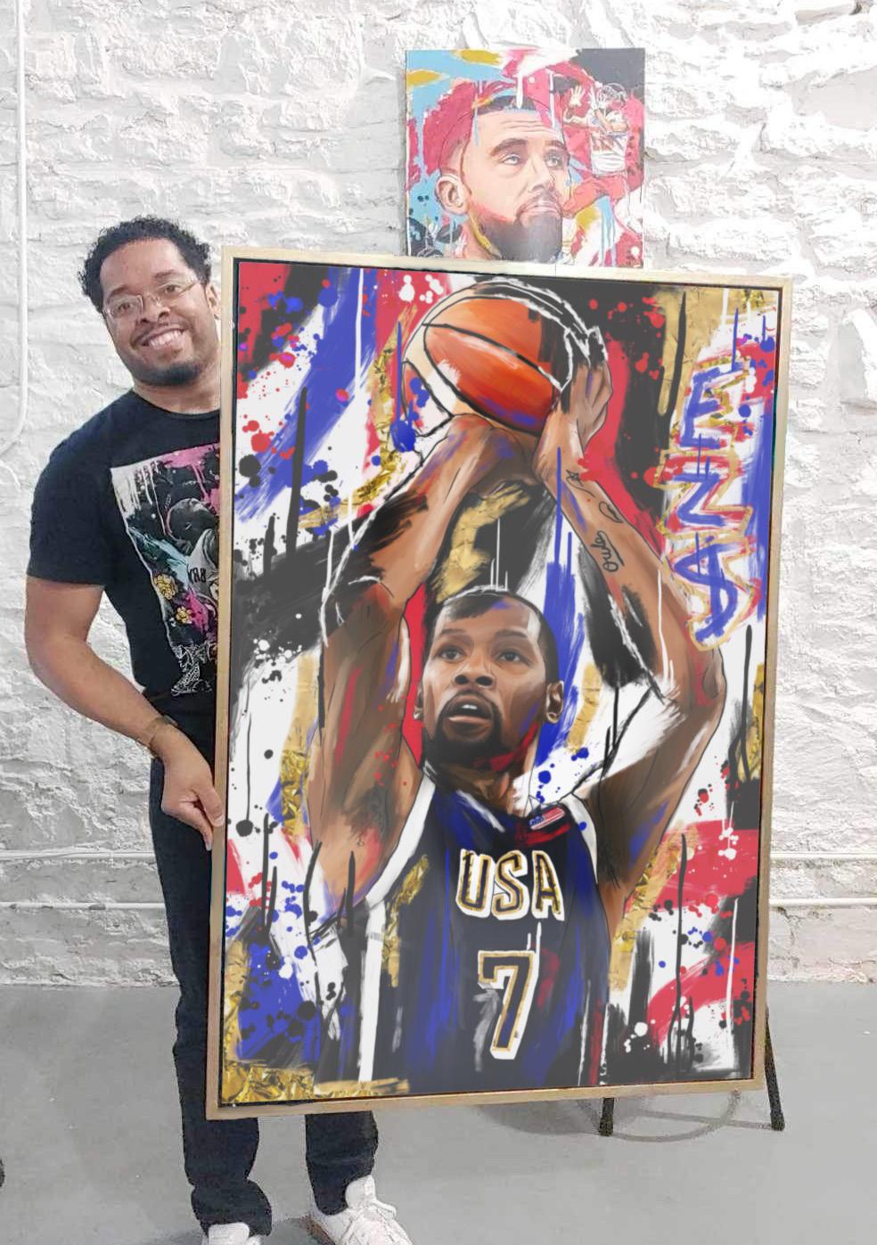 DeAnte would later learn about print-on-demand. With the emergence of social media, his dream of making a living from my art seems possible. In 2021, he made a few art pieces as a side gig, as he worked as an Insurance Agent full-time. When he was laid off from his job, DeAnte decided to go full throttle with his work. He went to a Chiefs game, and while tailgaters were waiting for entry, I walked around the parking lot selling prints and canvases. “I made more in a few hours than I did in a whole month at work. From that moment, I told my wife I’m not sending in another application, and I have been a full-time artist since,” he says.