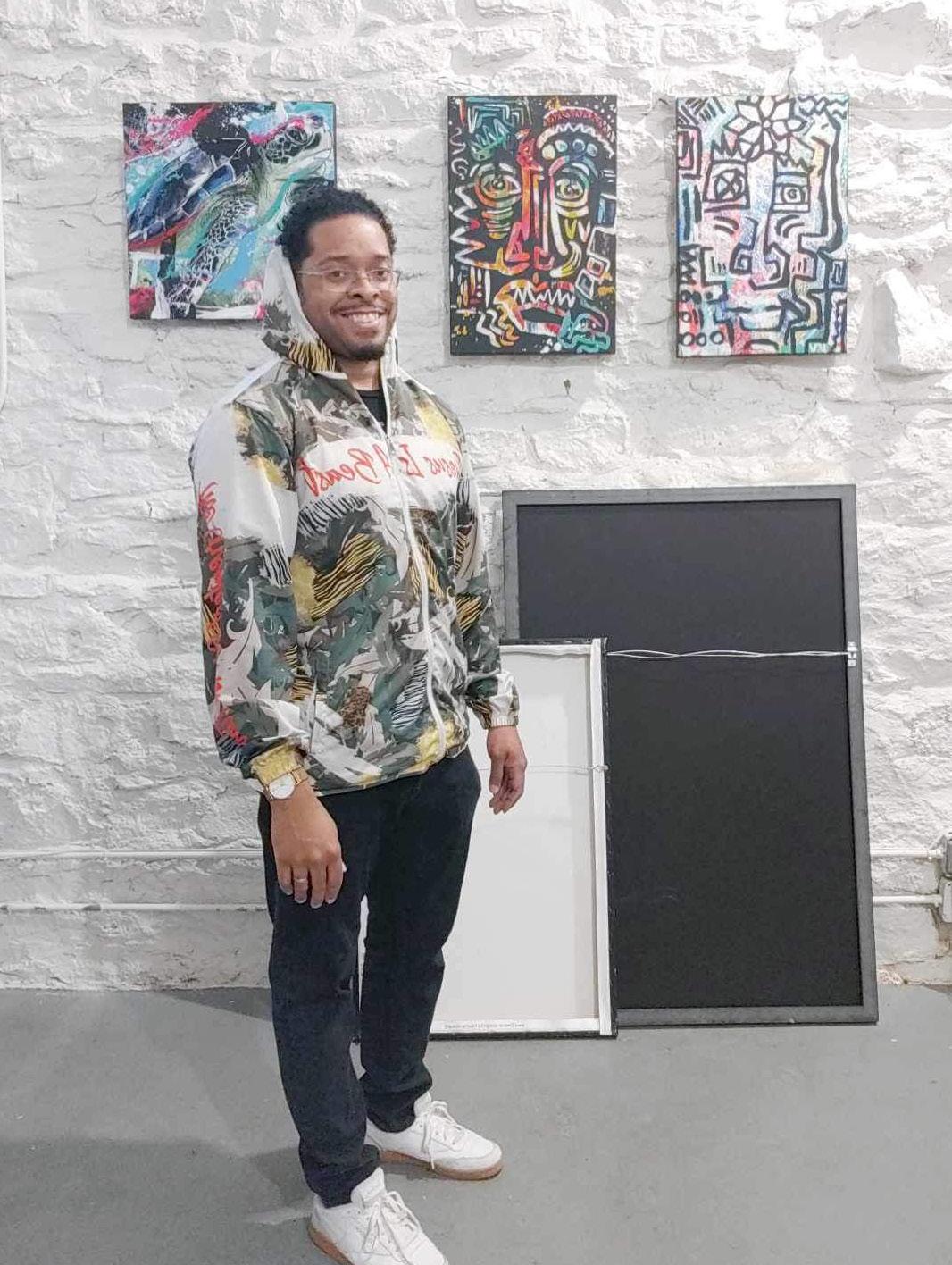 DeAnte started his professional art journey in 2021. He says, “I always loved art. Since a kid, I knew I wanted to do something with art being a key component. However purely being an artist seemed like a pipe dream, I have never seen anyone who looked like me, from where I’m from have a successful art career. I knew artists, but none of them, even the insanely talented ones, could support themselves, let alone love a family with their artwork, at least not directly. I ended up going to school for architecture, thinking I could do art that people could live in, but I didn’t like the program. I later pivoted to graphic design. Switching, unbeknownst to me, meant dropping my classes with a fail, which destroyed my GPA, and that became my last semester of college.