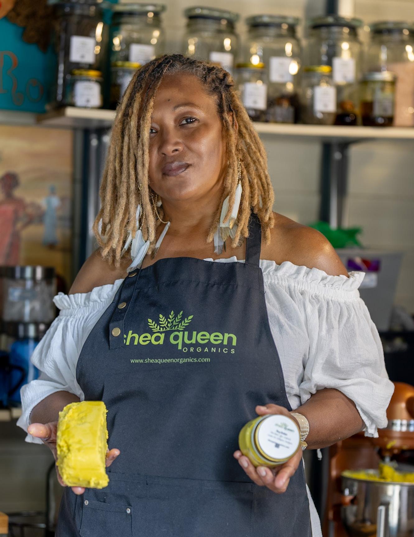 Paula “Shea Queen” Farve is a native of Bay St. Louis, MS. She is the lucky number 13 of 14 kids. She comes from a diverse background and culture. Her mom is of African descent and Creole, and her dad is of Choctaw and French descent. Paula is a mother of two adult kids and grandmother of five beautiful grandchildren. She is also the owner of The Real Shea Queen, LLC dba Shea Queen Organics, a skincare company that produces handmade, allnatural hair, skin, and body care products.