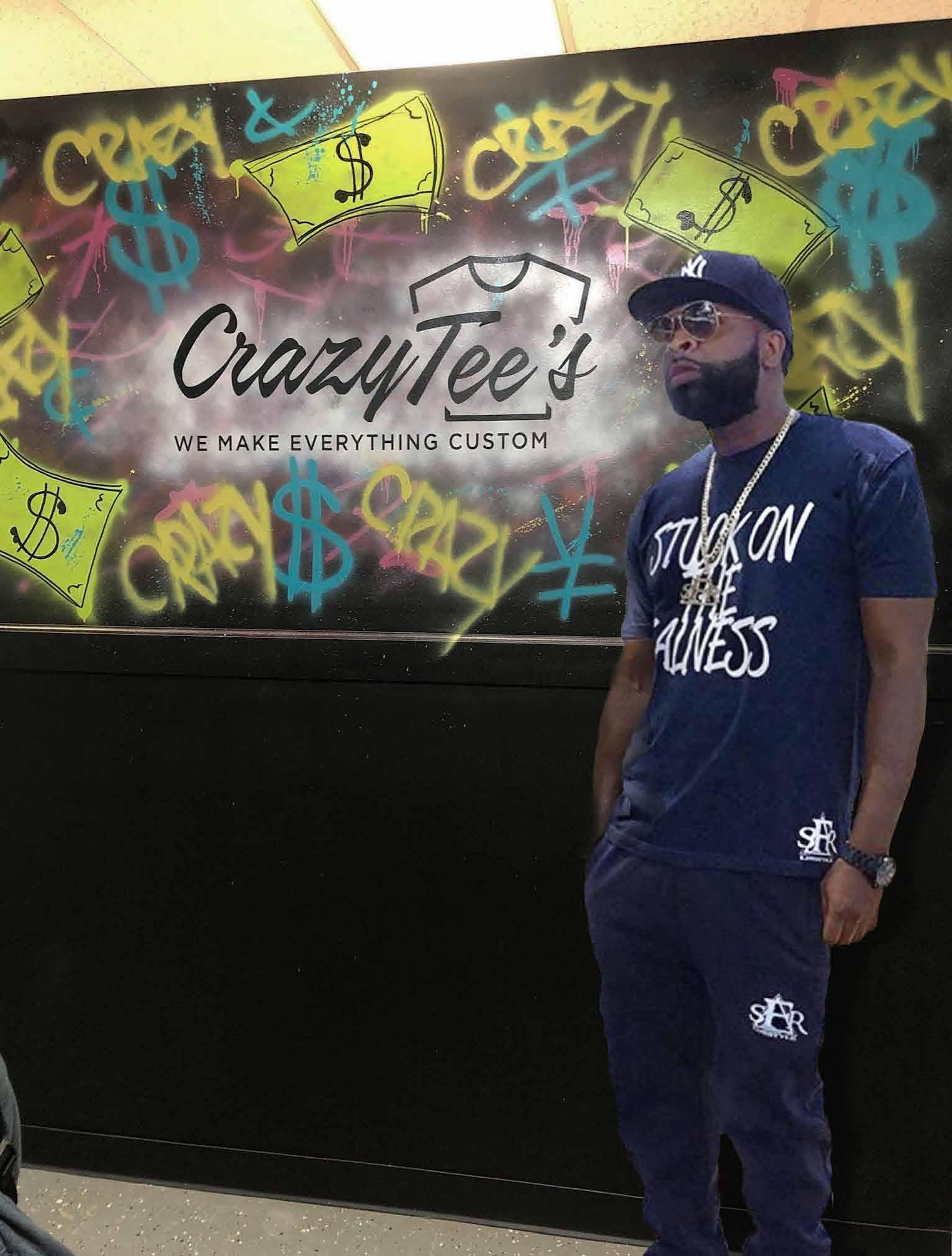 Tyrone originally started his career as an independent Hip Hop artist and began printing shirts around 2012 at his home as a means to promote his music. The business took off and soon the day arrived for Crazy Tee’s to be main street.